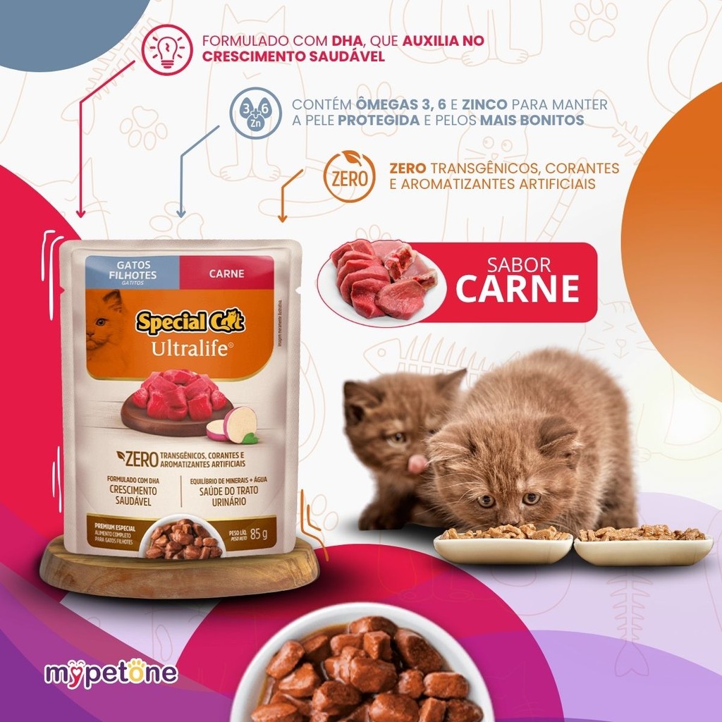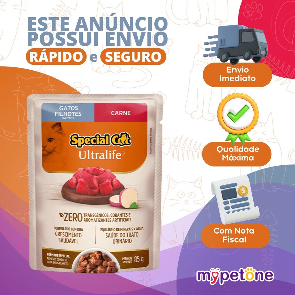 Caixa 12 Sachê Special Cat Ultralife Filhotes Sabor Carne - 85g