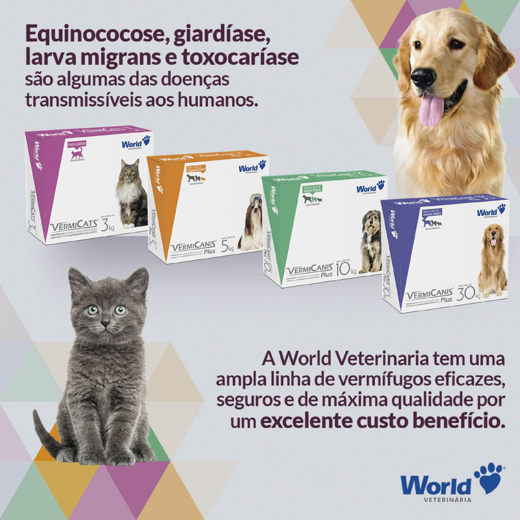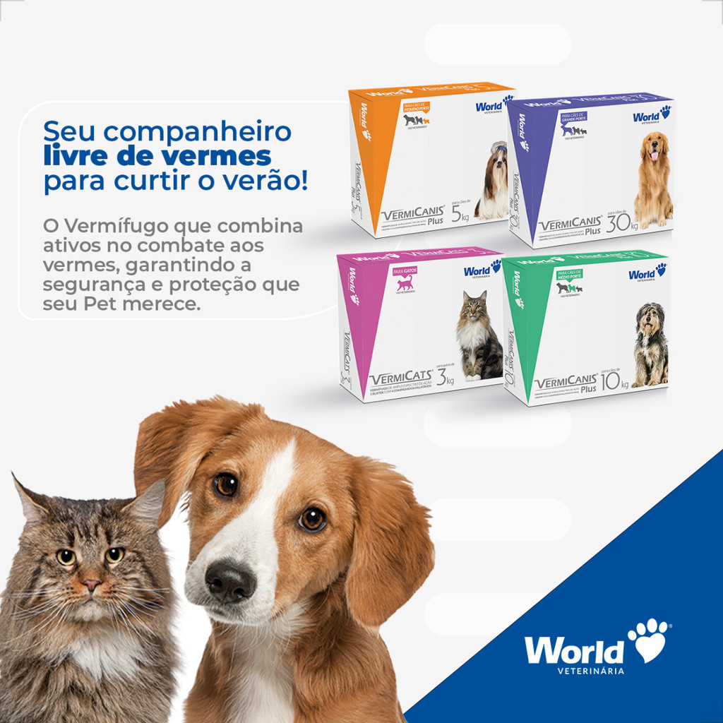 Kit 4 VermiCats Vermífugo World para Gatos de 3Kg - 1 Blíster 4 Comprimidos