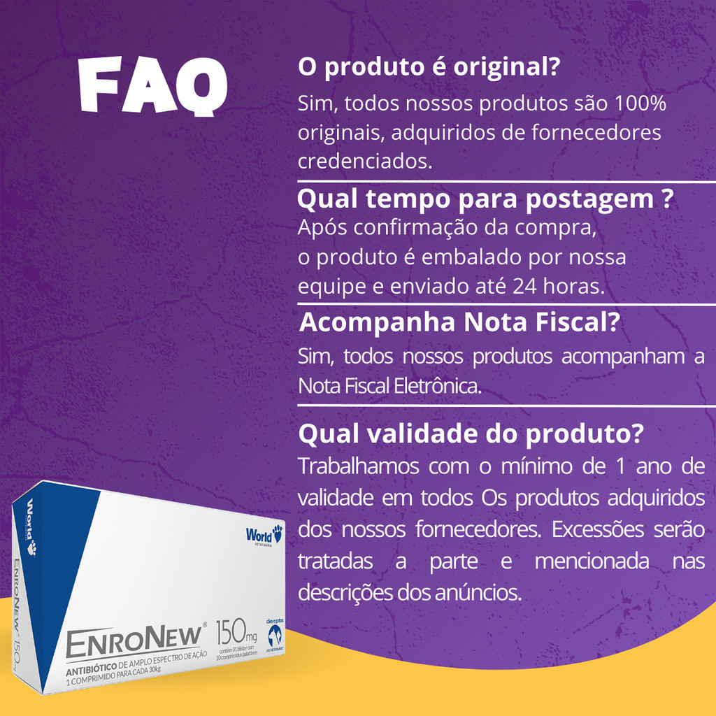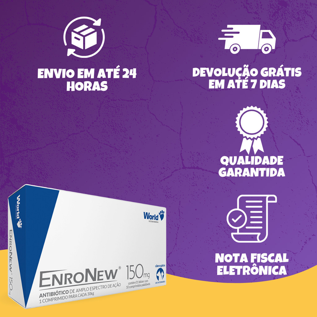 EnroNew World 150mg para Cães e Gatos de até 30kg - 10 Comp