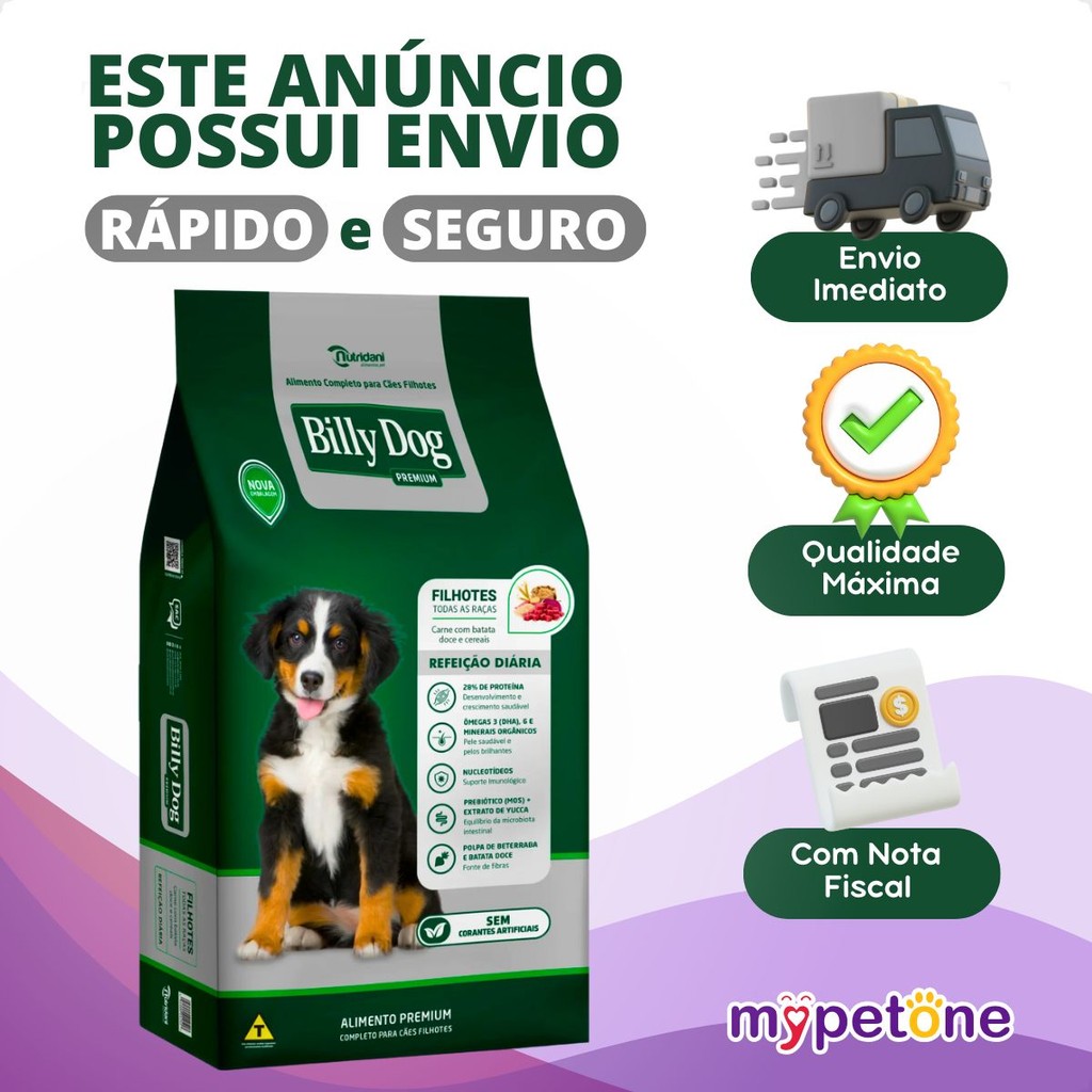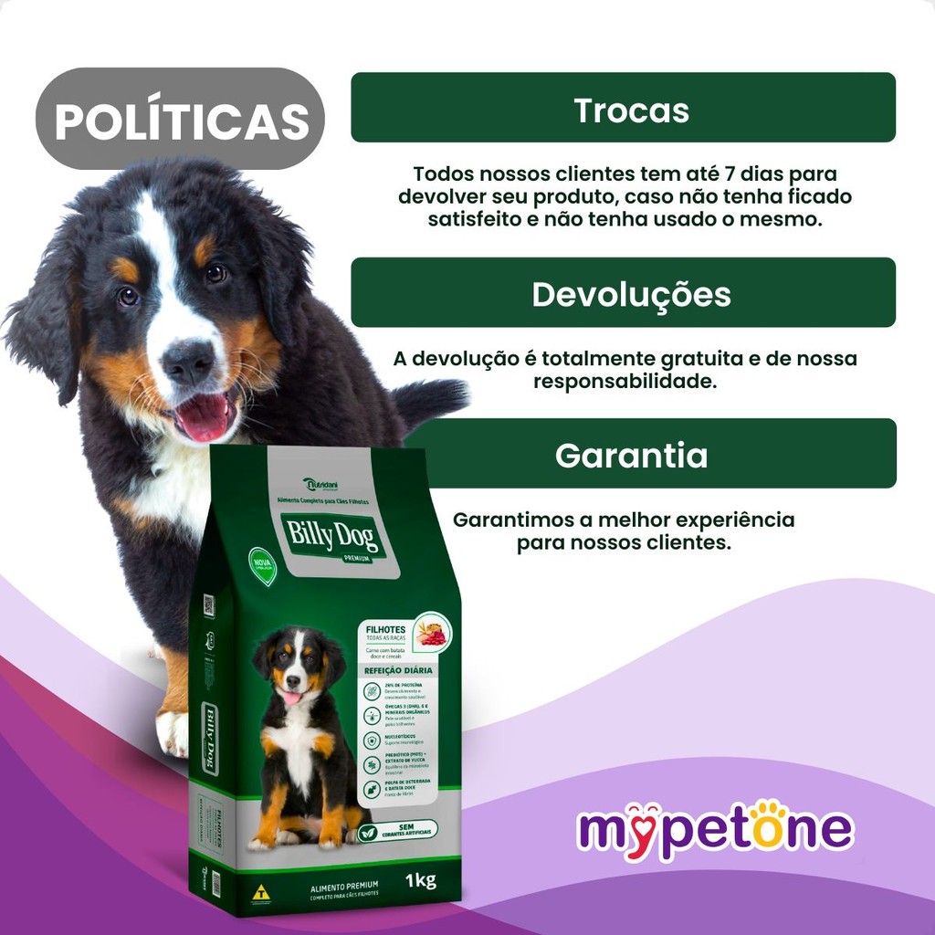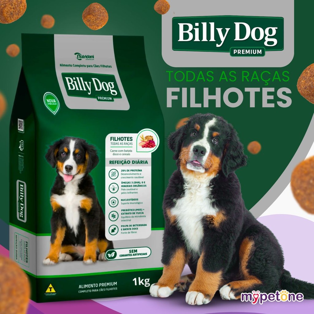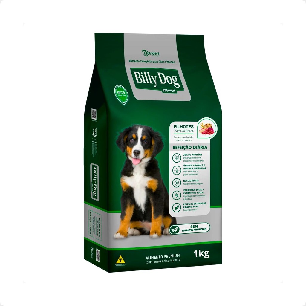Ração Billy Dog 1Kg Cães Filhotes Refeição Diária