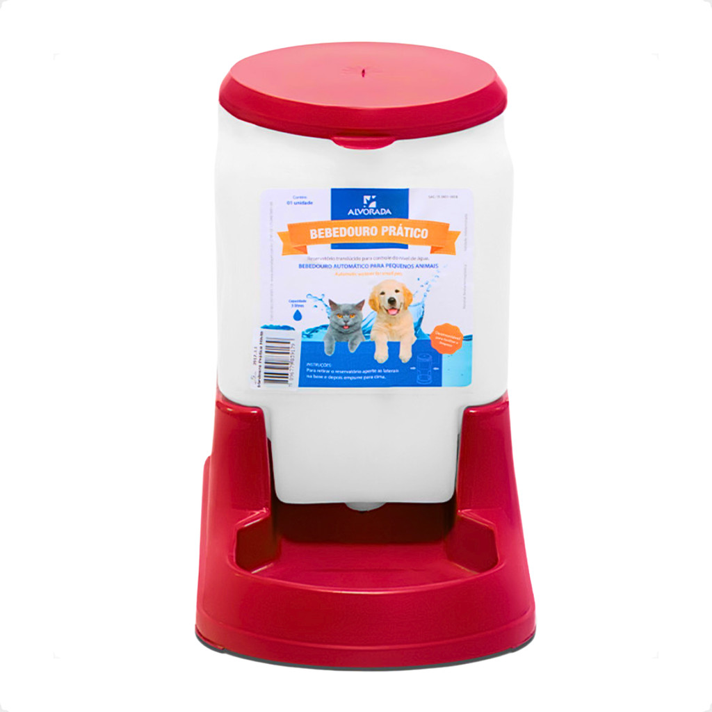 Bebedouro Automatico Cachorro Gato e Prático 3 litros - Alvorada Vermelho