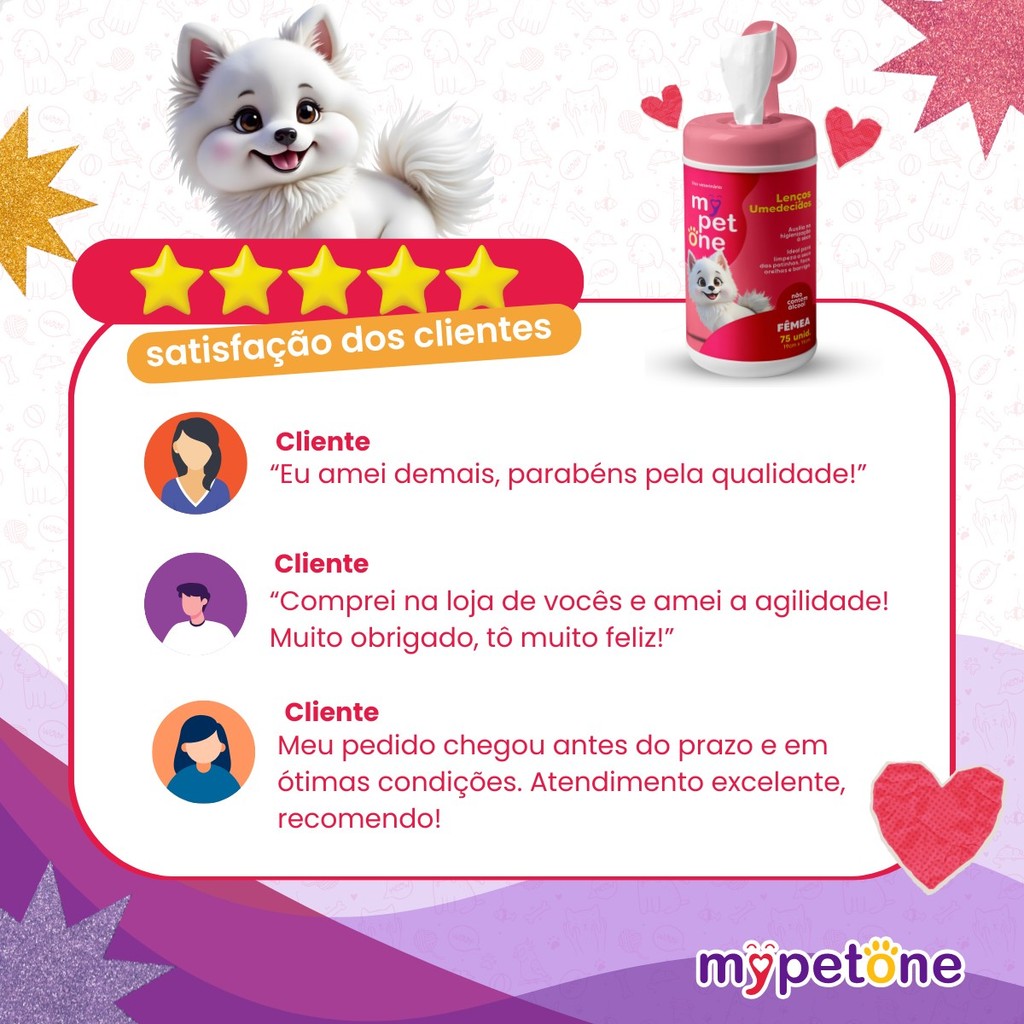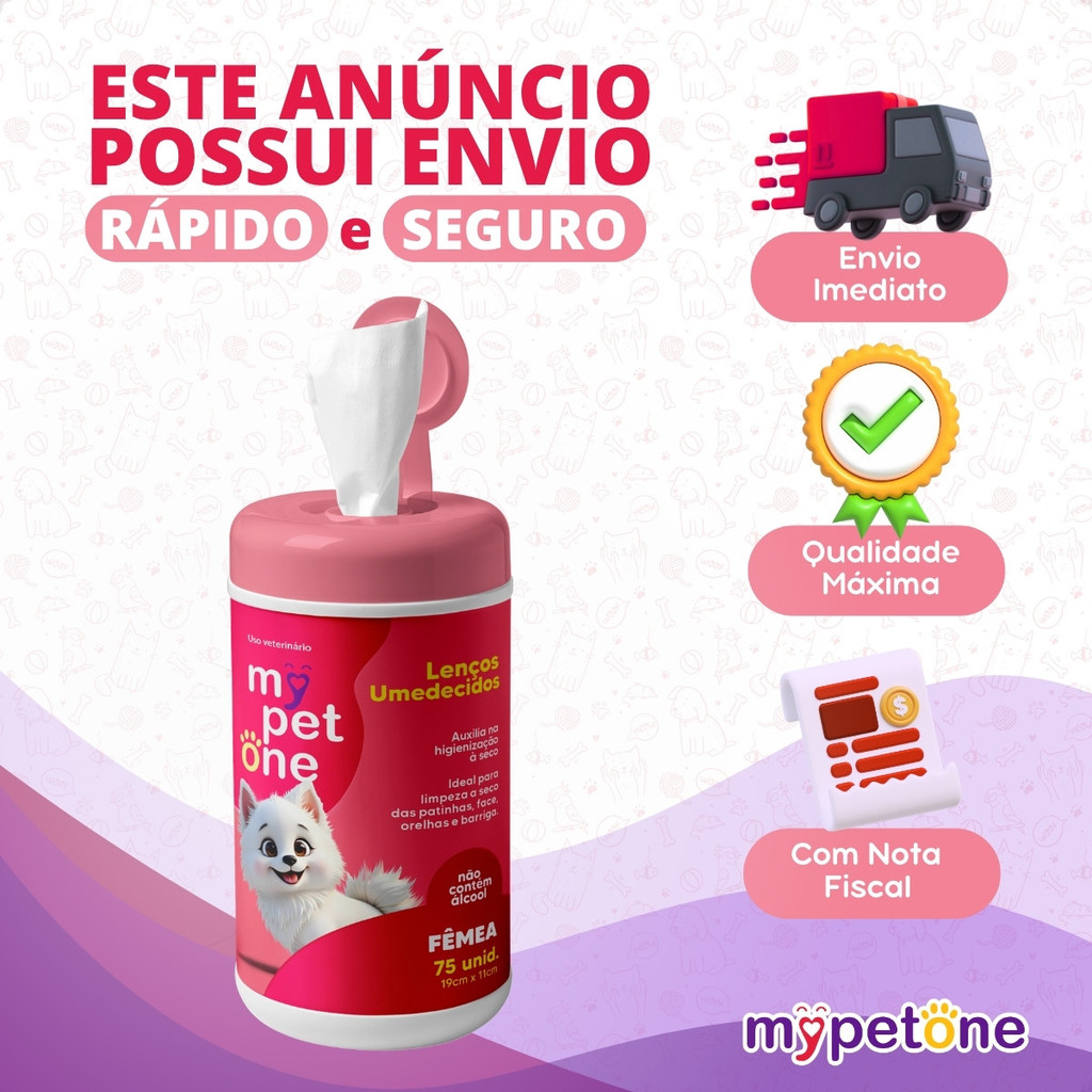 Kit 4 Lenço Umedecido Cão e Gato Fêmeas Mypetone - 300 Unidades