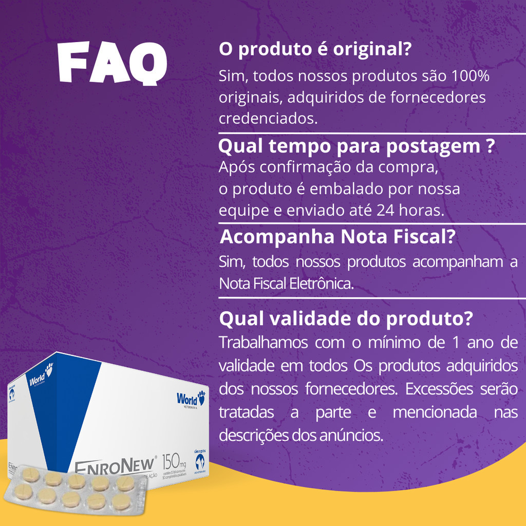 Kit 3 EnroNew 150mg World para Cães e Gatos de até 30kg - Blíster 10 Comprimidos