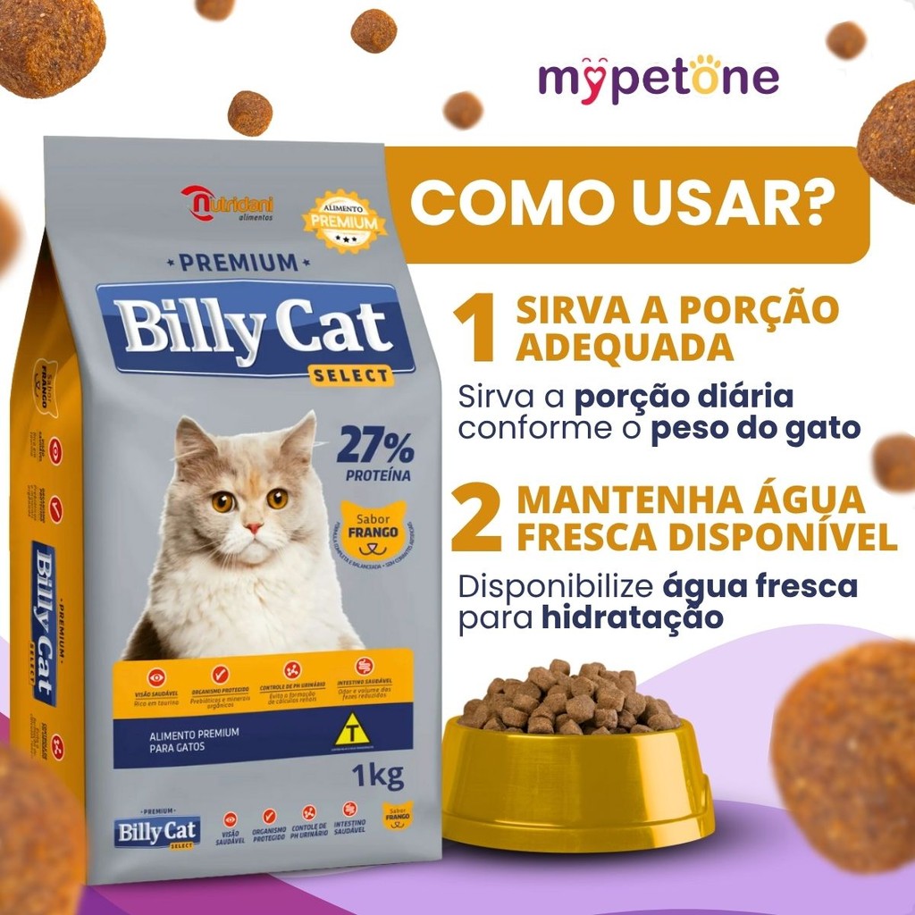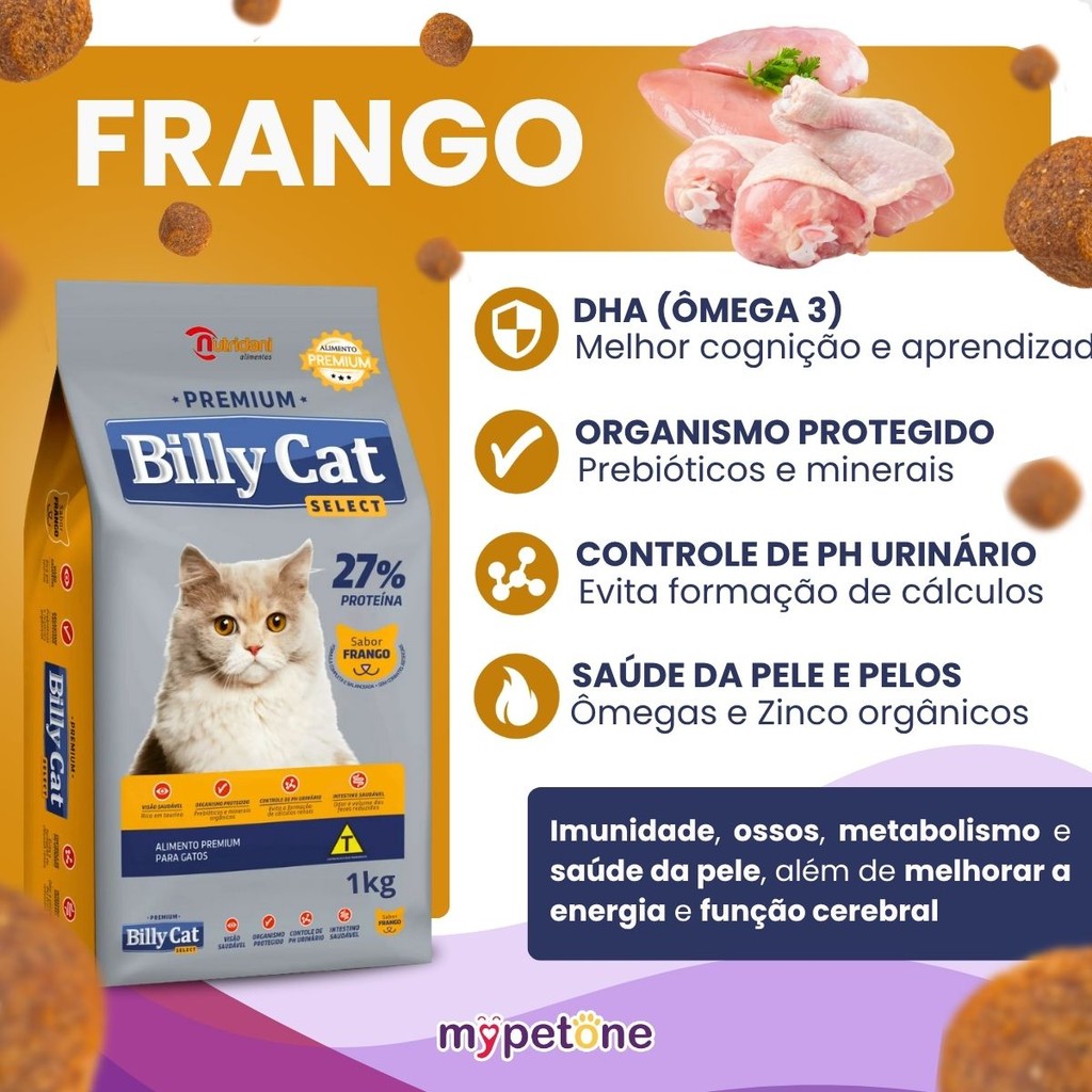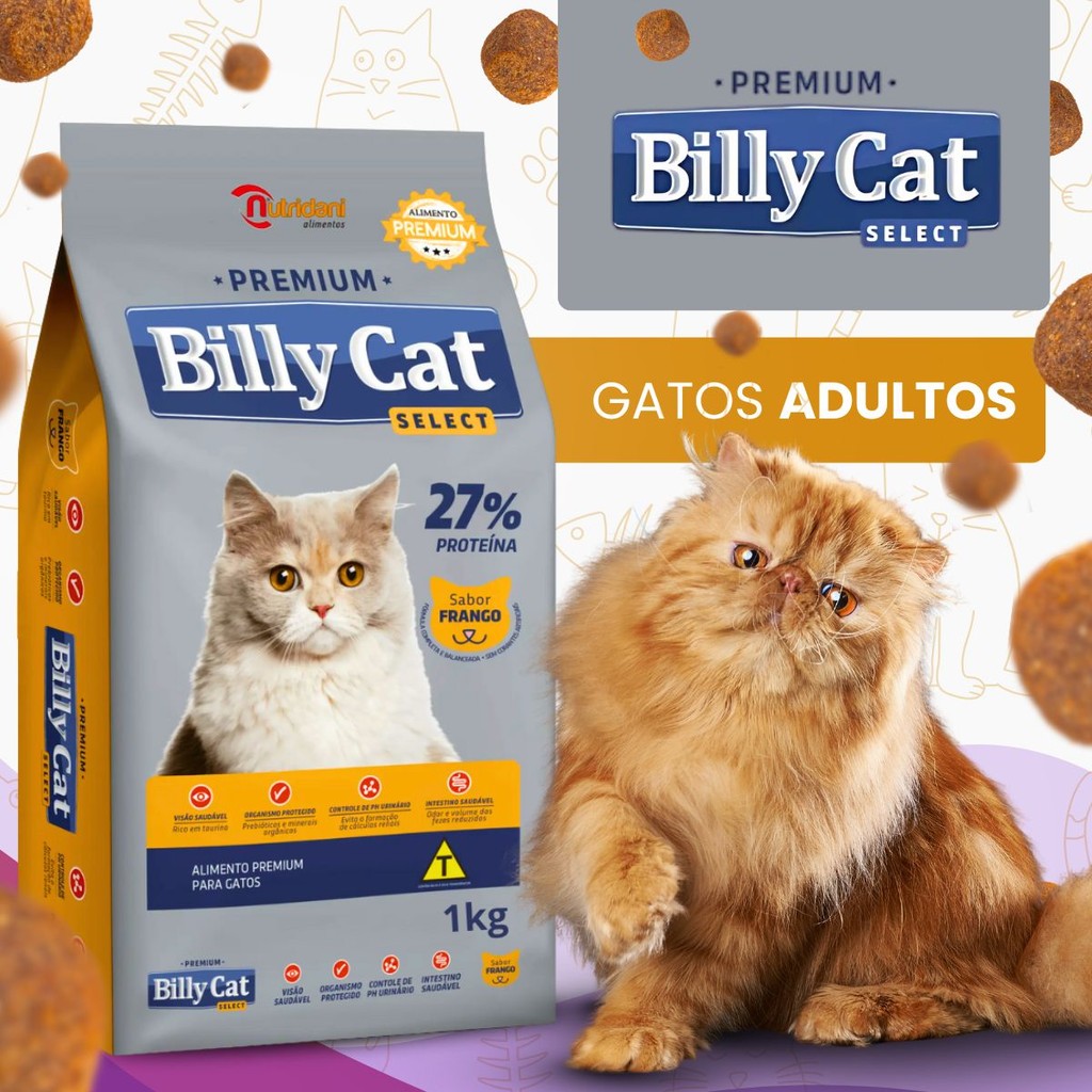 Kit 4 Ração Billy Cat Select Gatos Adultos Frango - 1Kg