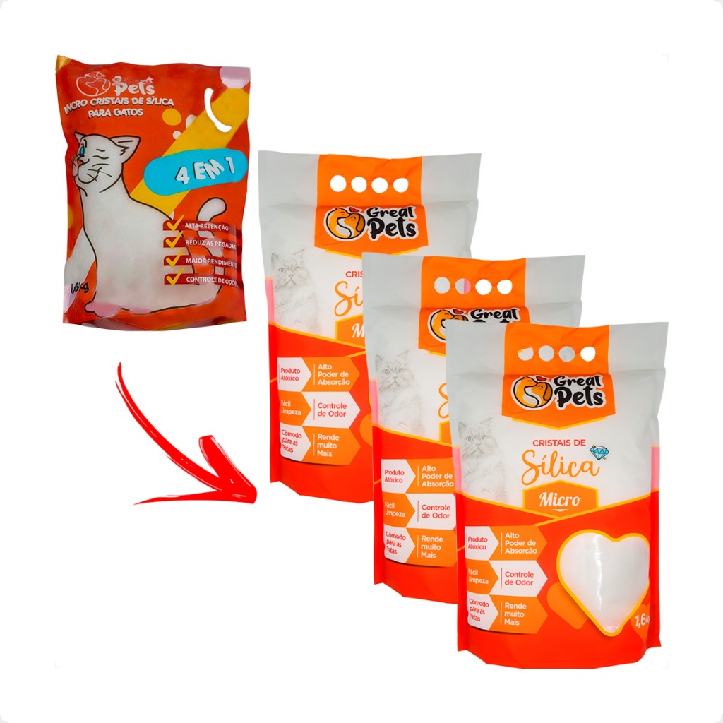 Kit 3 Areia Sílica Fina Great Pets para Gatos - 1,6 Kg
