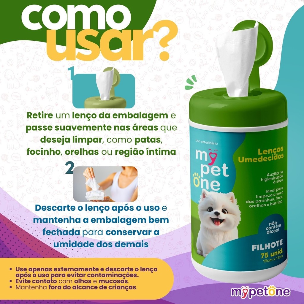 Kit Banho a Seco Cães Filhotes + Lenço Umedecido Cães Filhotes Mypetone