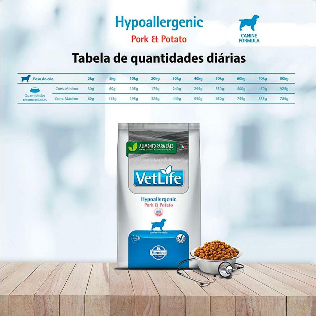 Vet Life Ração Seca Hypoallergenic Pork e Potato para Cães Adultos - 10,1Kg