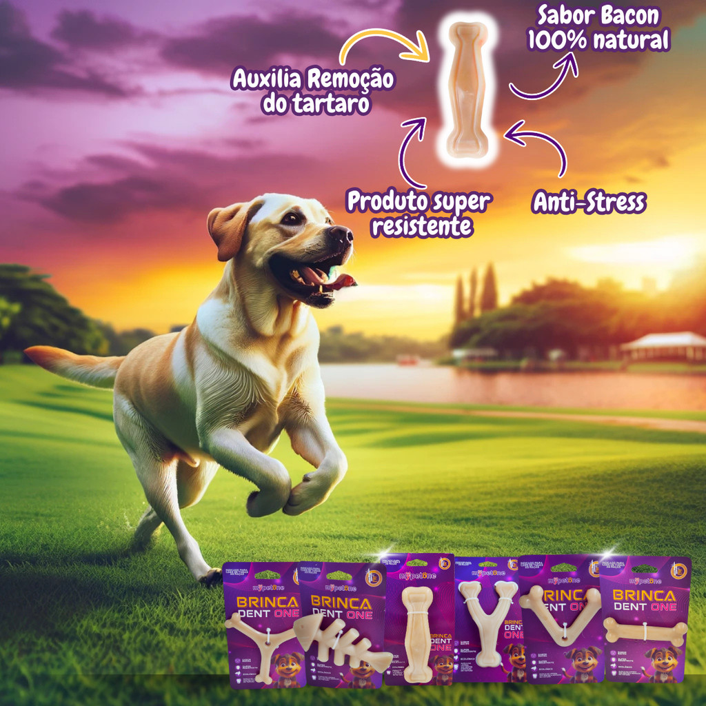 Kit 3 Brinquedo Osso Bamboo Brinca Dent One Sabor Bacon - I - Grande