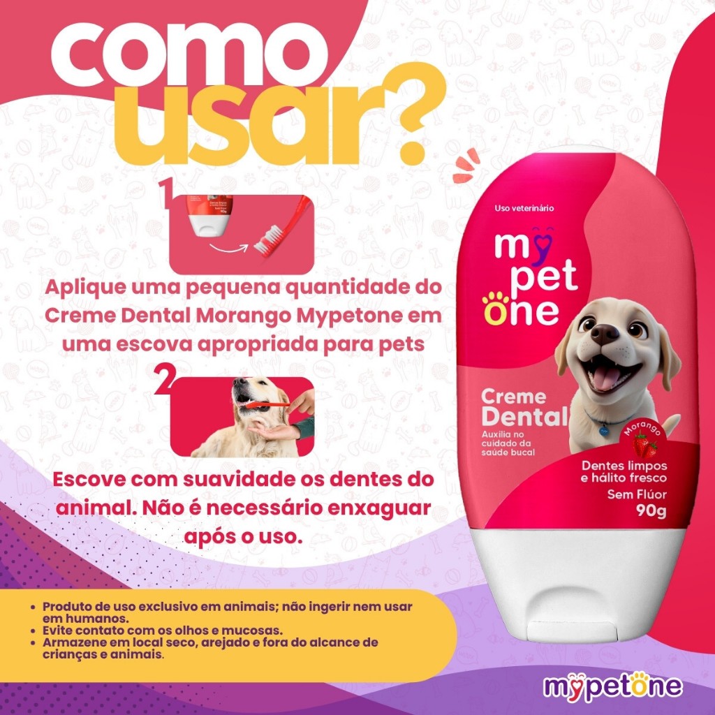 Kit 4 Creme Dental Sabor Morango Mypetone - 90g
