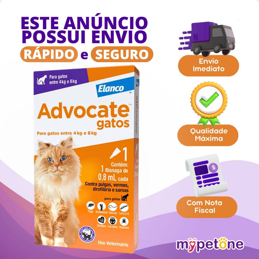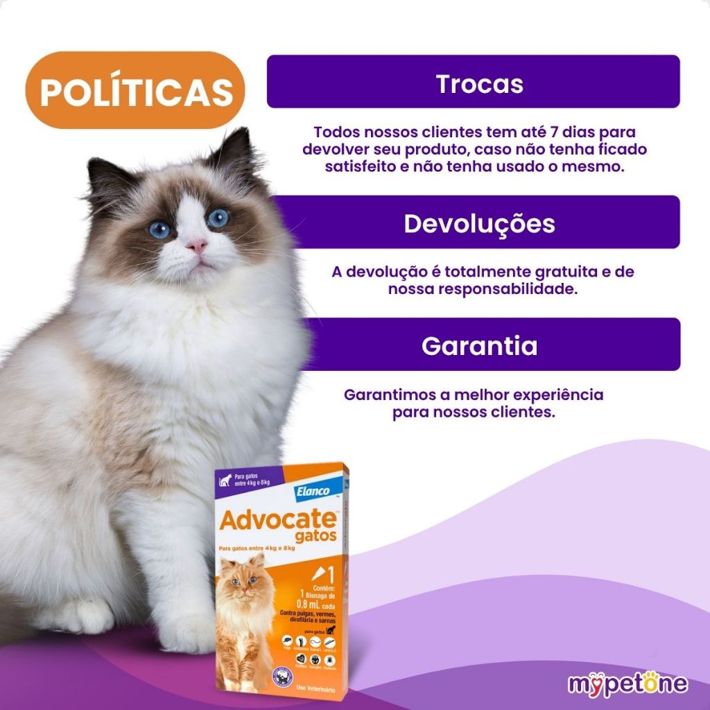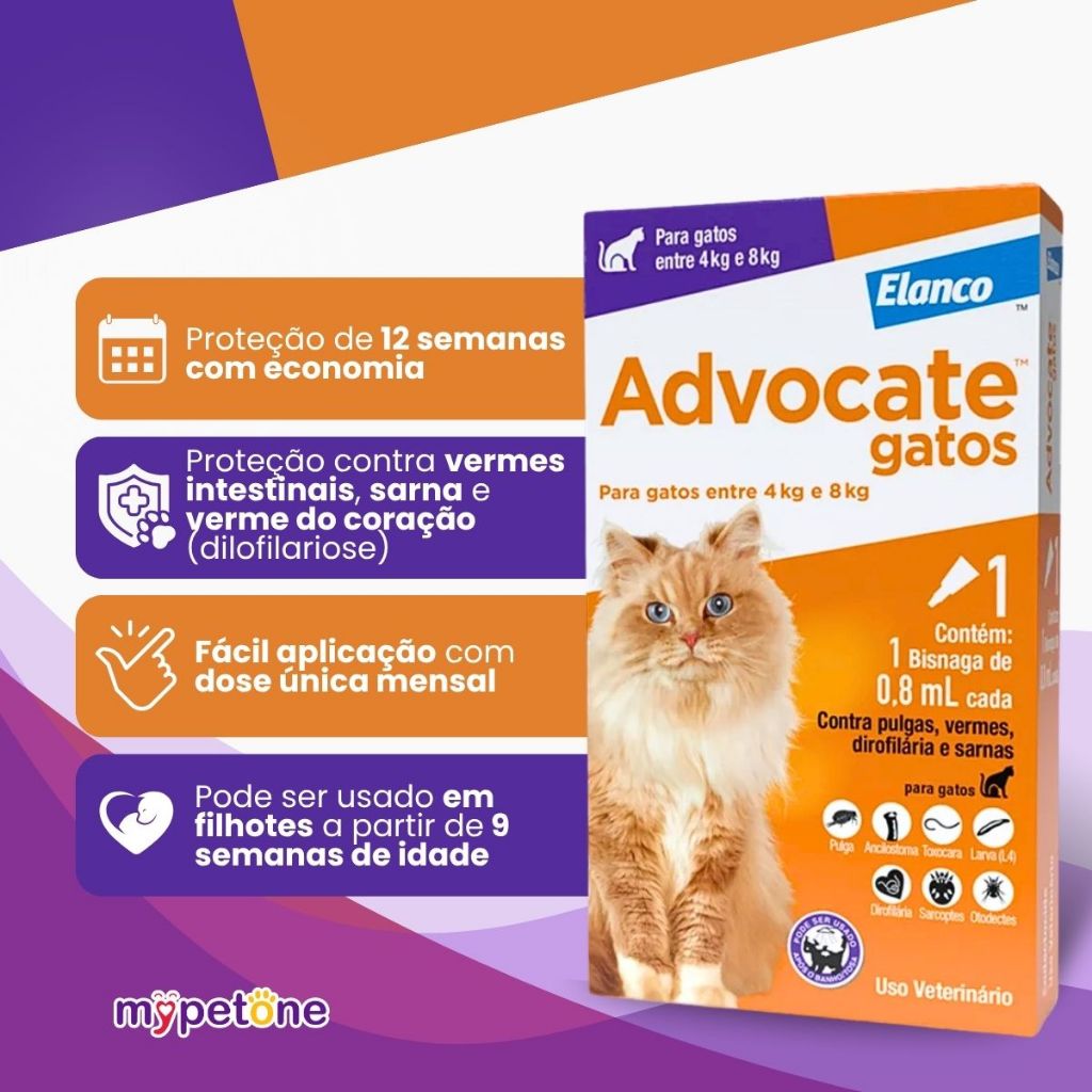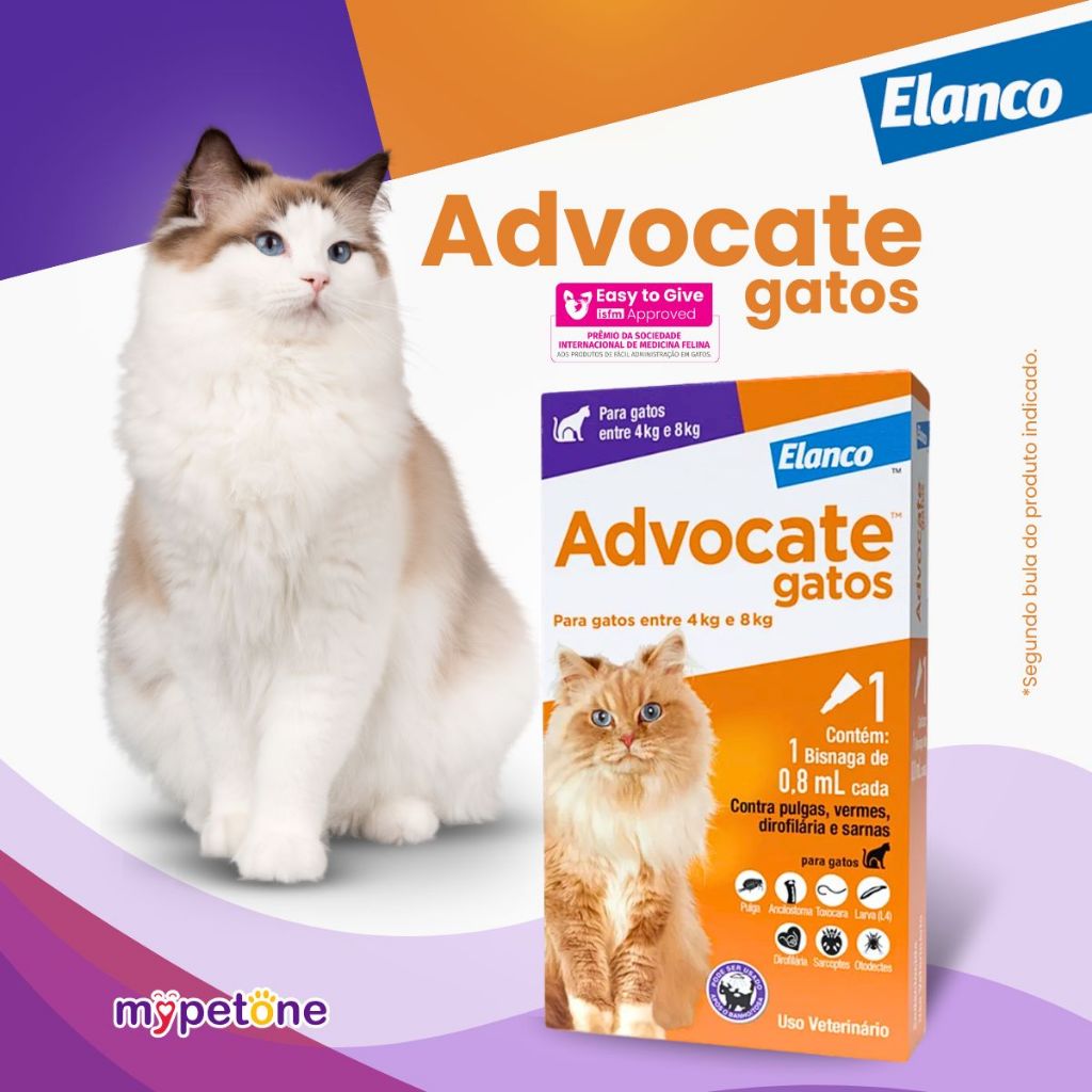 Kit 5 Antipulgas Advocate Elanco 0,8 mL para Gatos de 4 a 8 Kg - 1 Bisnaga