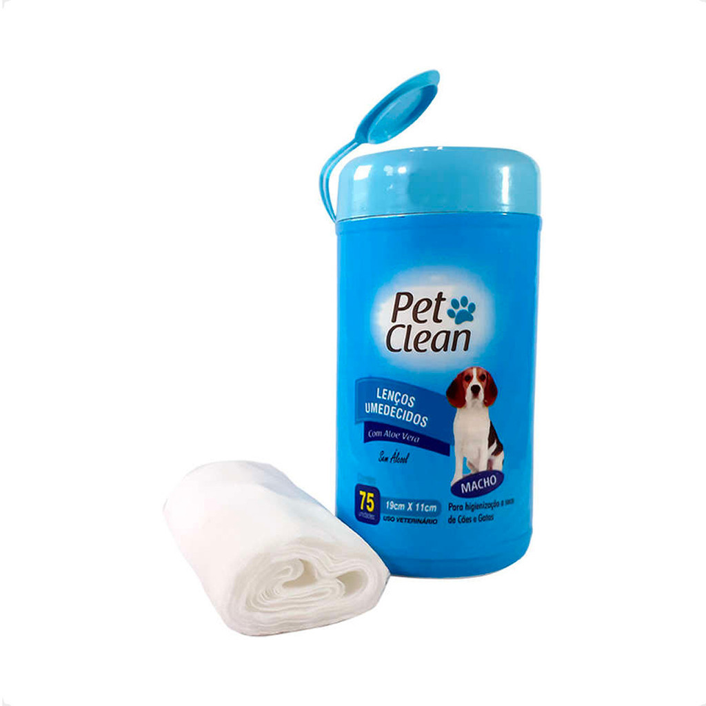 Lenços Umedecidos Macho Pet Clean para Cães e Gatos - 75 Unidades