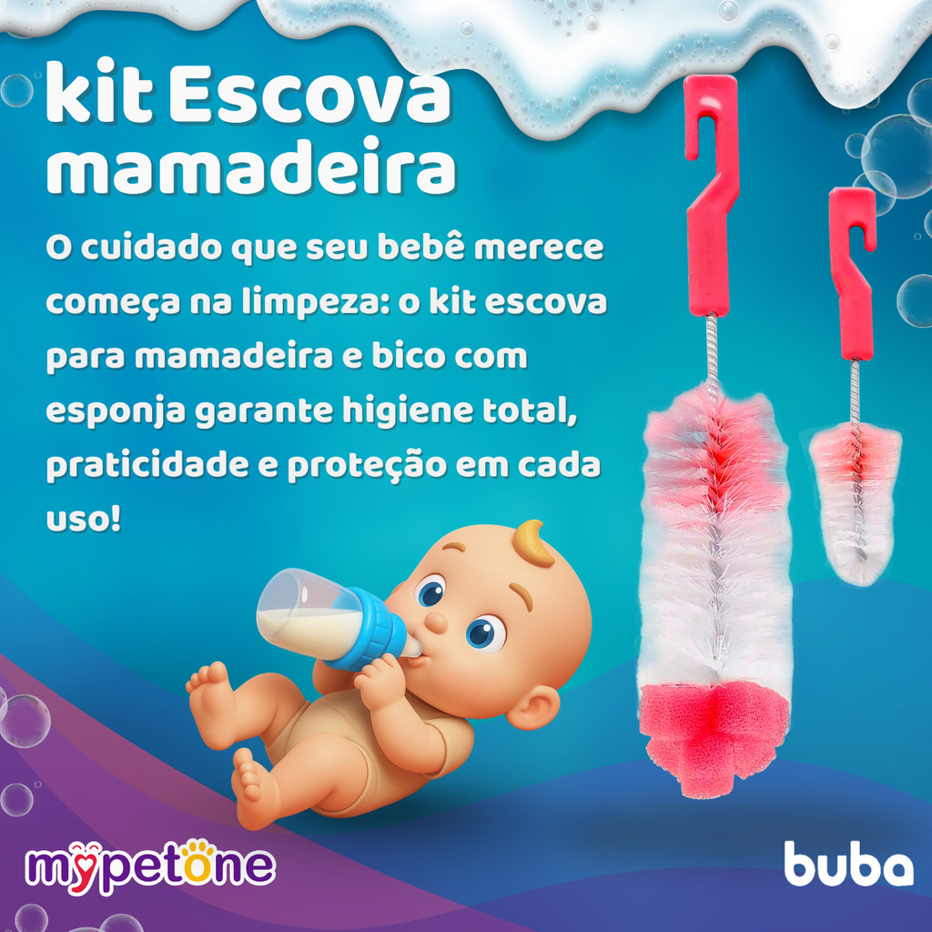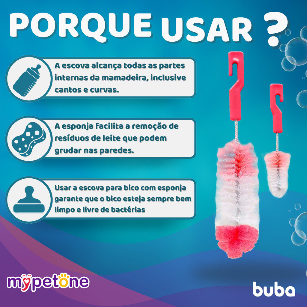 Kit de Escovas para Mamadeira e Bicos Esponja - Rosa