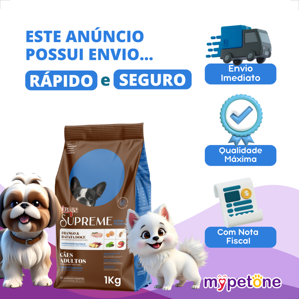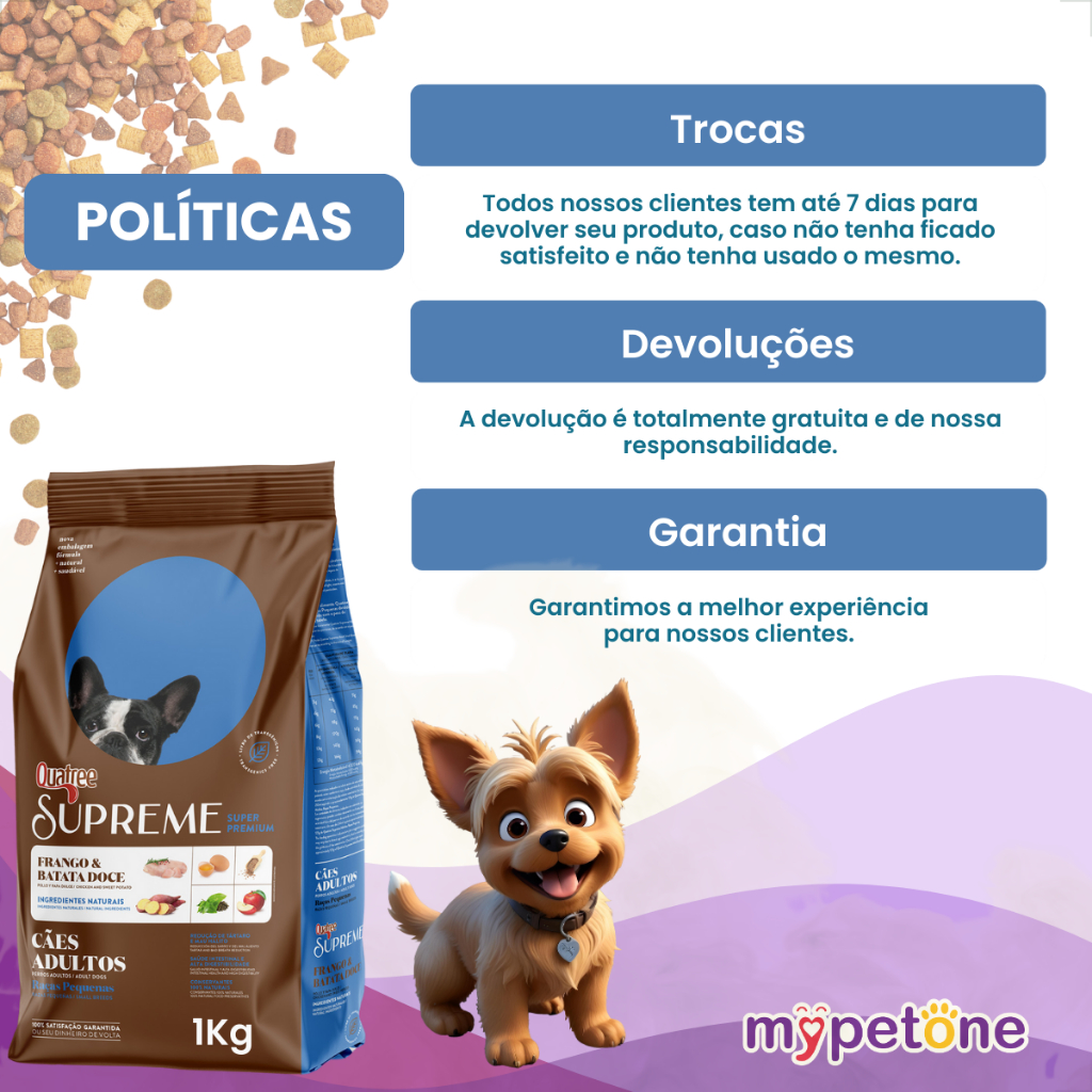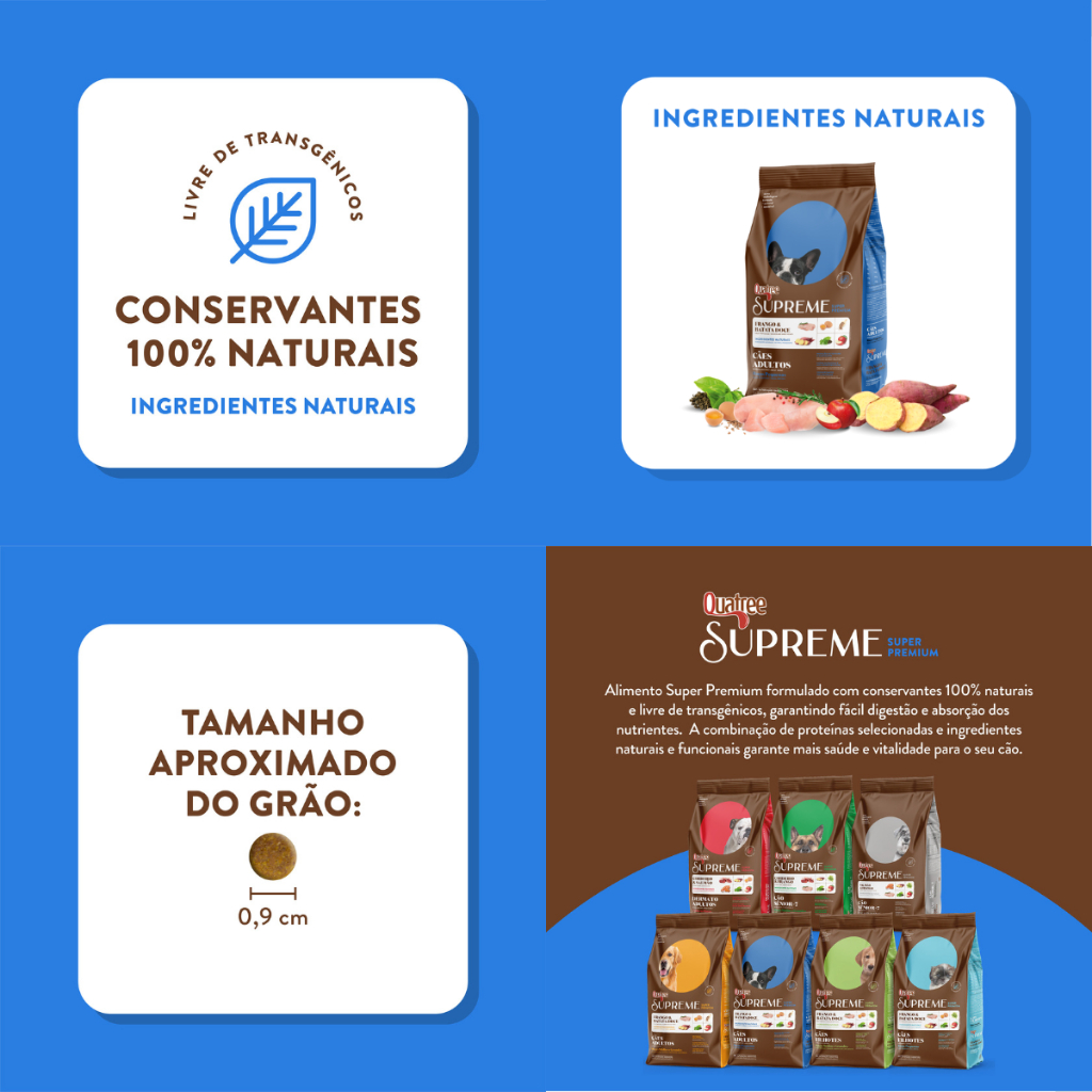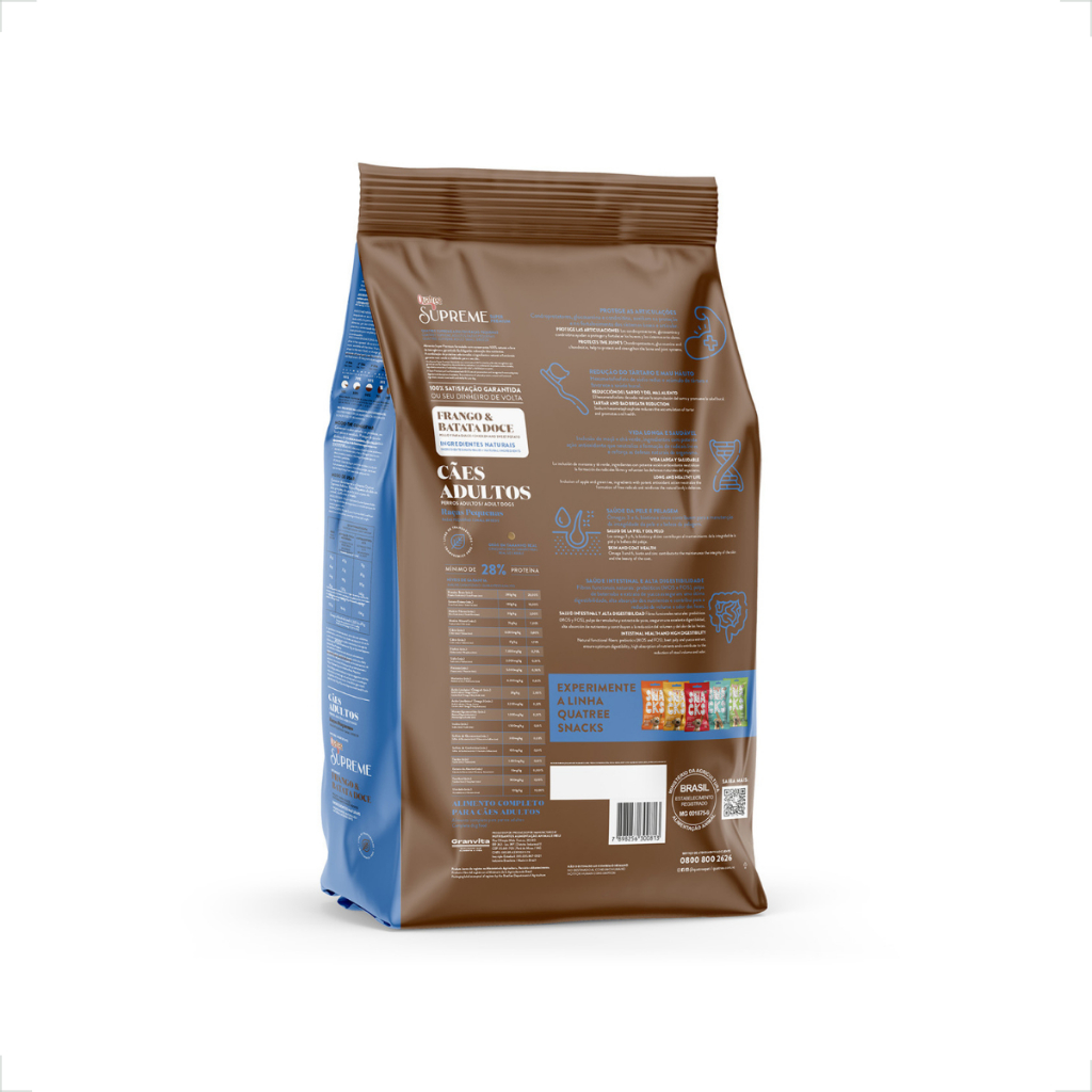 Ração Seca Quatree Supreme Frango e Batata Doce Cães Adultos Raças Pequenas - 1 Kg