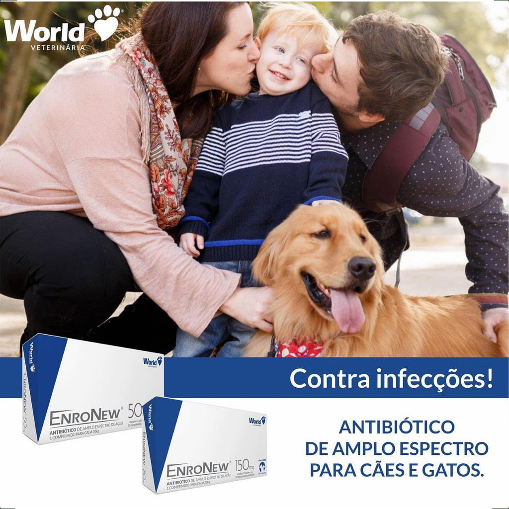 Kit 3 EnroNew 50mg World para Cães e Gatos até 10kg - Blíster 10 Comprimidos