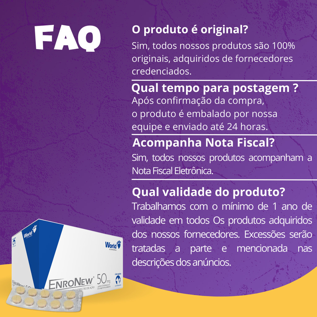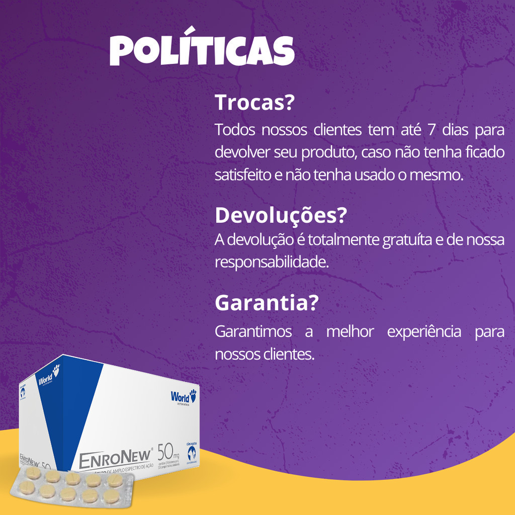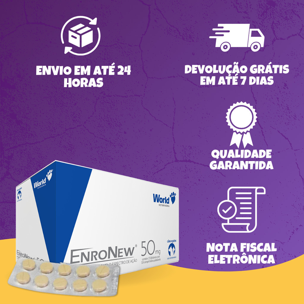 EnroNew 50mg World Cães e Gatos até 10kg Blíster 10 Comprimidos