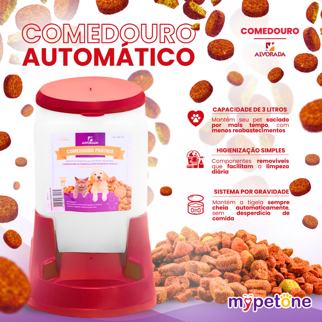 Comedouro 3 Litros Automatico Cachorro e Gato Prático - Alvorada