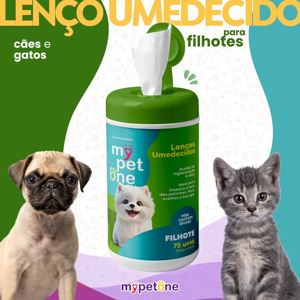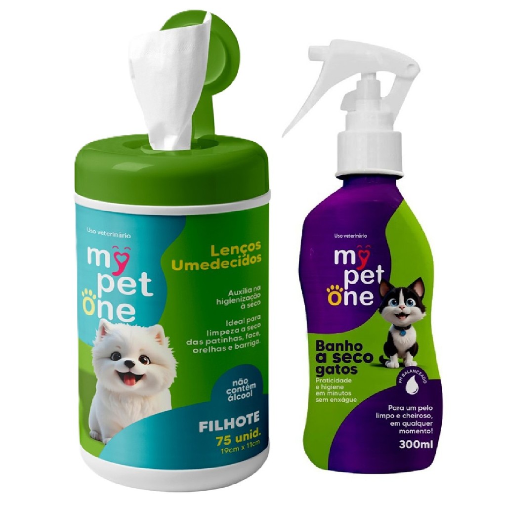 Kit Banho a Seco Filhotes Gatos + Lenço Umedecido Filhotes Mypetone