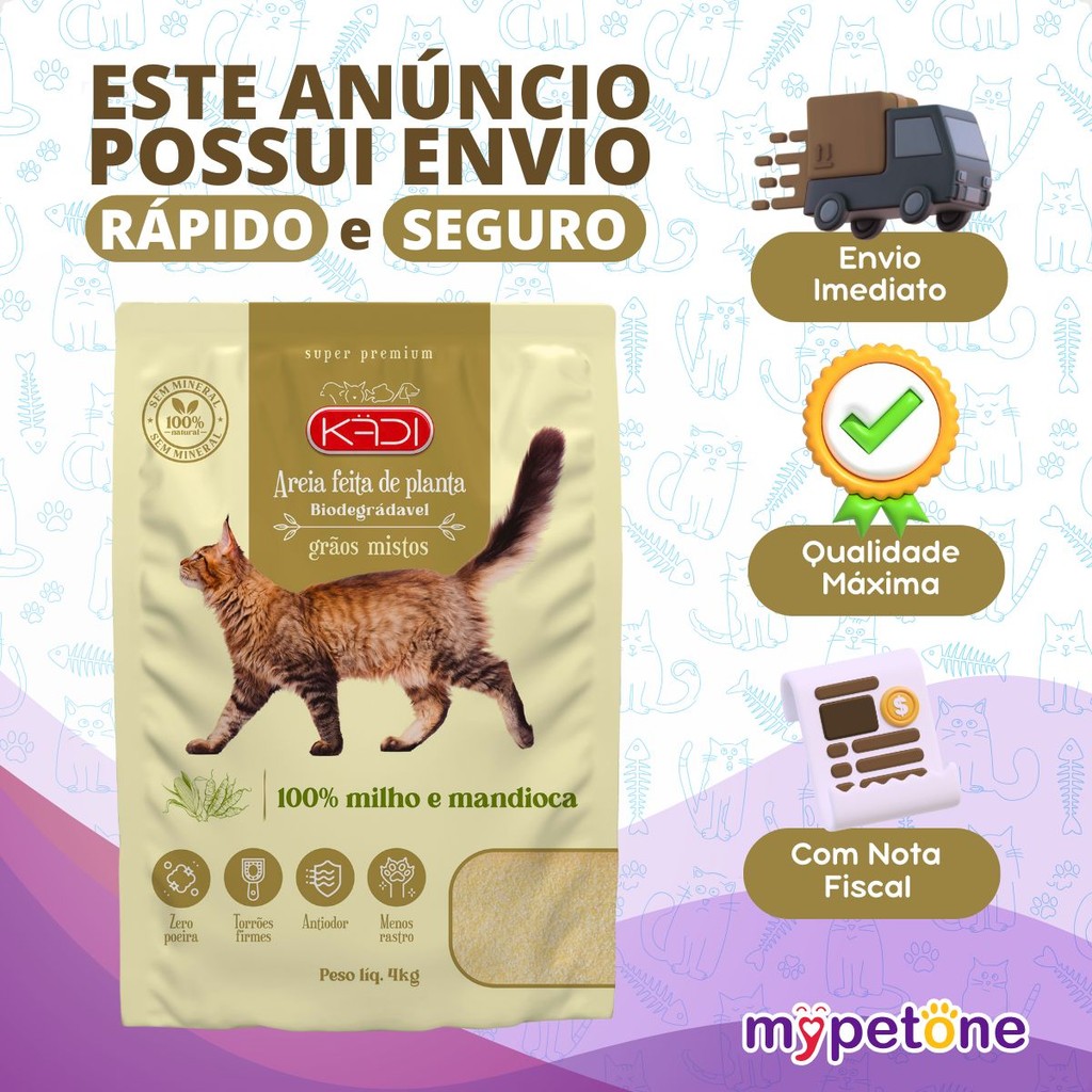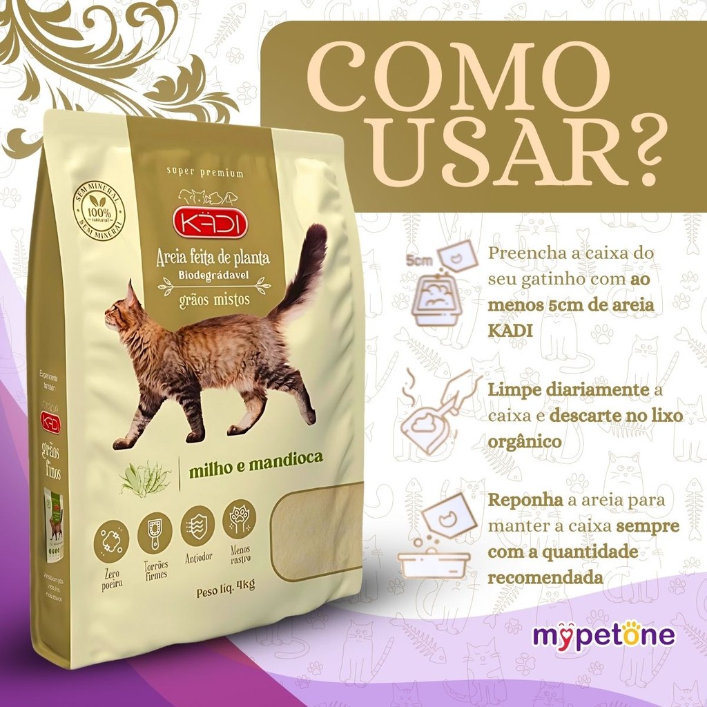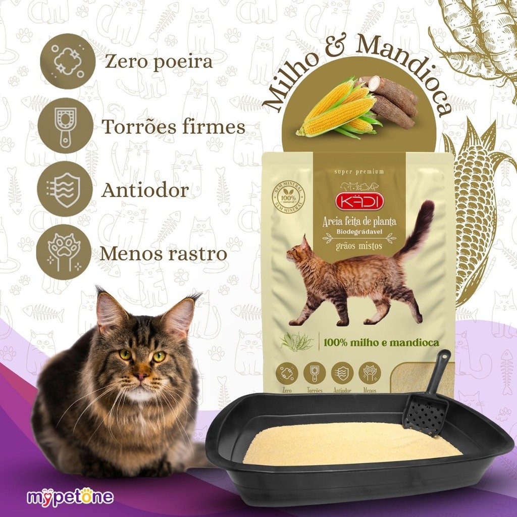 Kit 5 Areia Biodegradável 4 Kg Grãos Mistos - Kadi