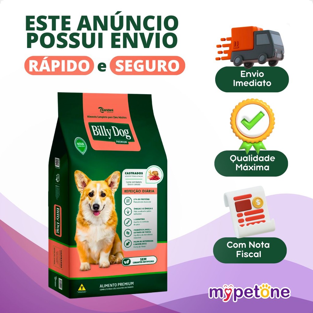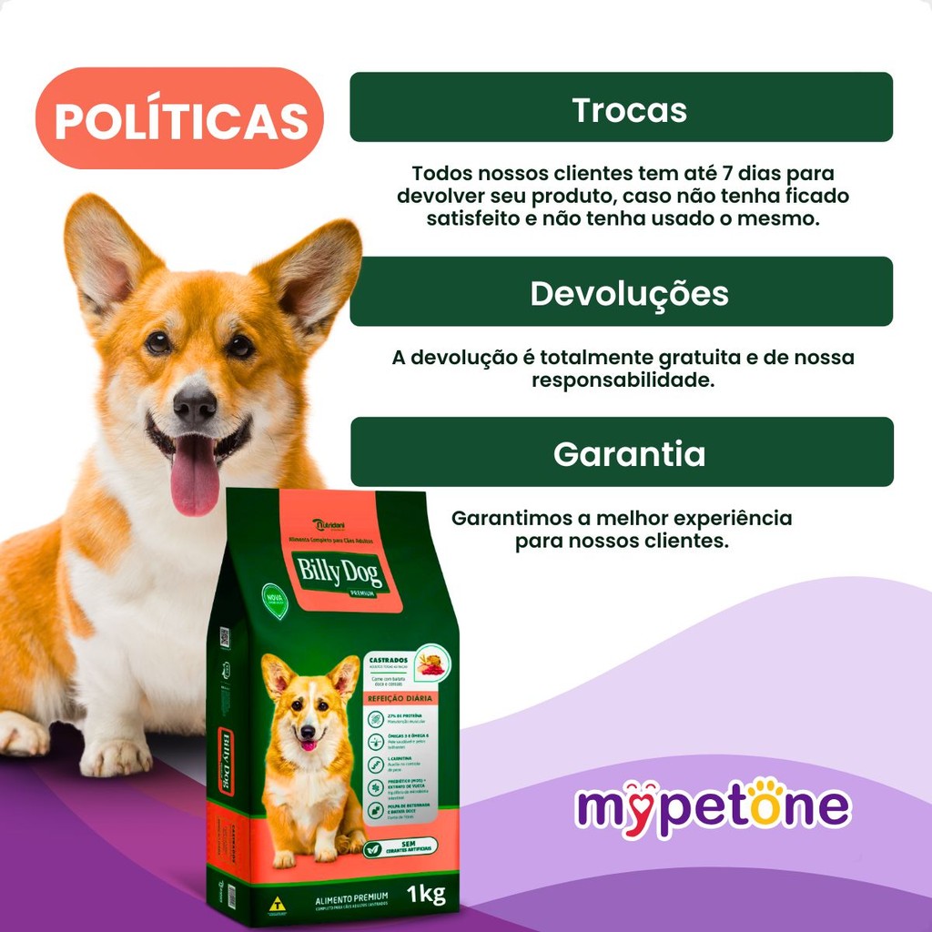 Kit 4 Ração Billy Dog Castrados 1Kg Refeição Diária Cães