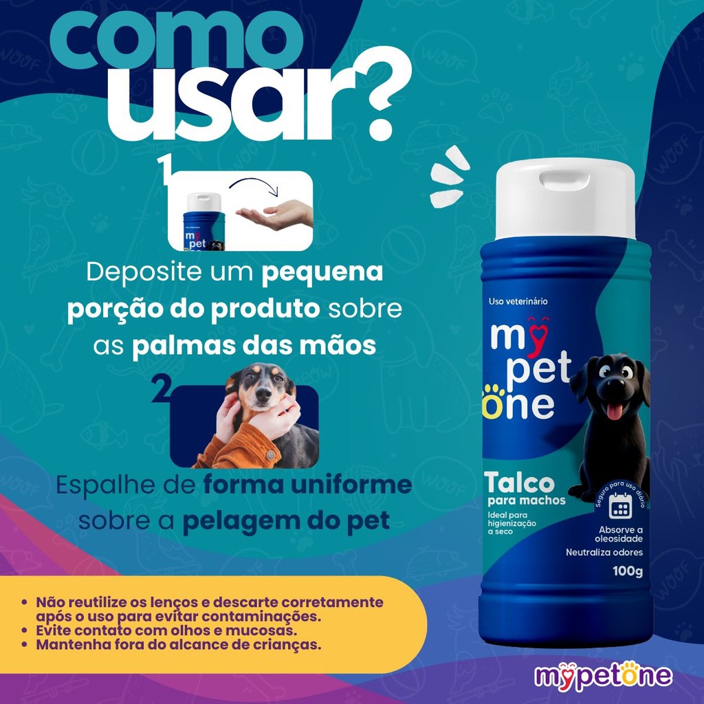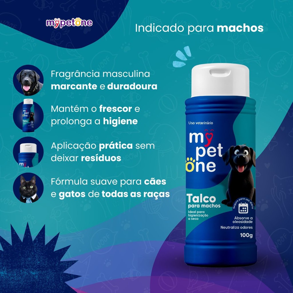 Kit 2 Talco Higienico Perfumado 100G Para Cães Macho Mypetone