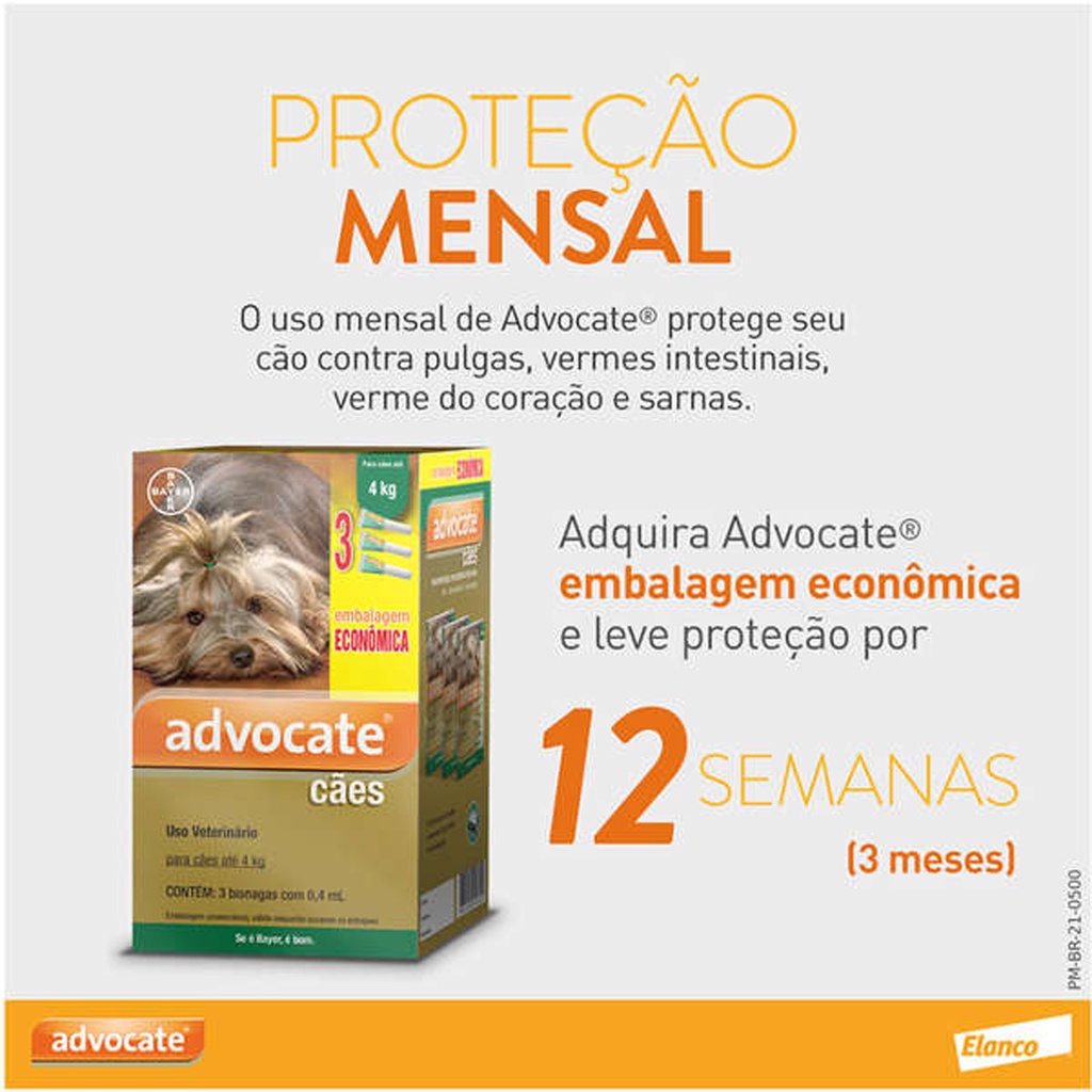 Advocate Elanco 0,4 mL para Cães de até 4 Kg - 3 Bisnagas