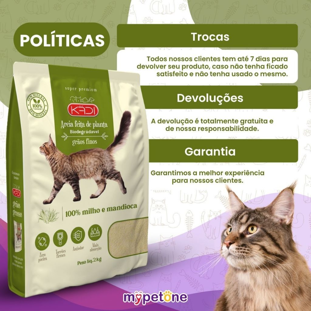 Areia Biodegradável Kadi Grãos Finos - 2Kg