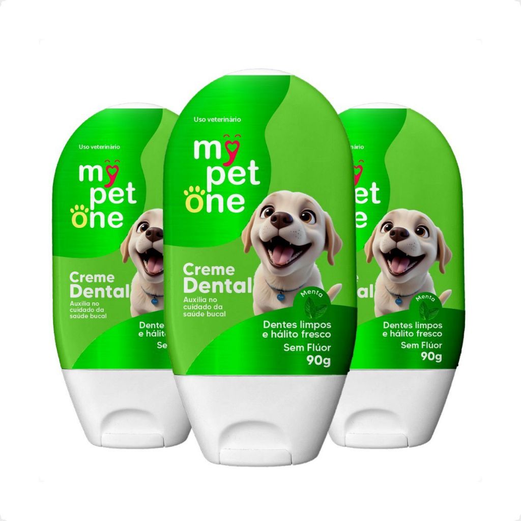 Kit 3 Creme Dental Menta para Cães e Gatos Mypetone - 90g
