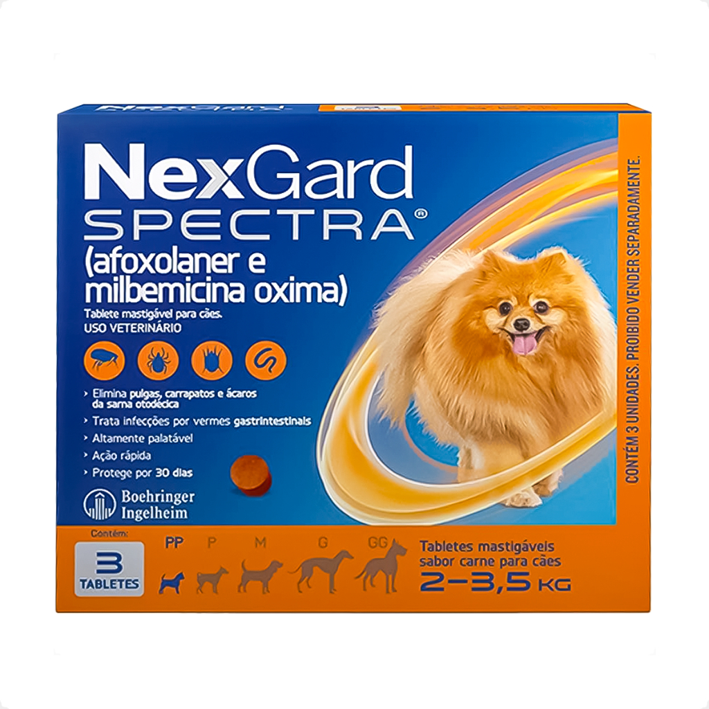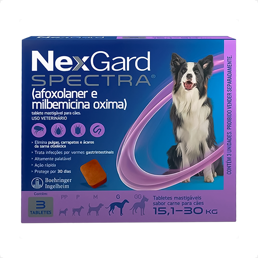 NexGard Spectra - 3 Tabletes para Cães de 3 a 60kg Antipulgas e Carrapatos