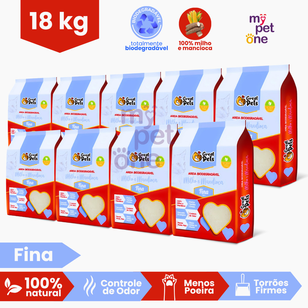 Kit 9 Areia Biodegradável Fina Great Pets - 2 Kg
