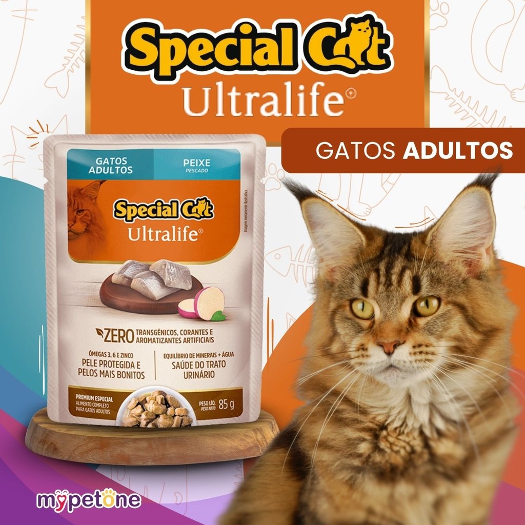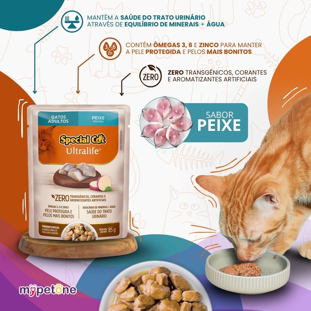 Kit 4 Caixa 12 Special Cat Ultralife Sachê Adultos Sabor Peixe - 85g