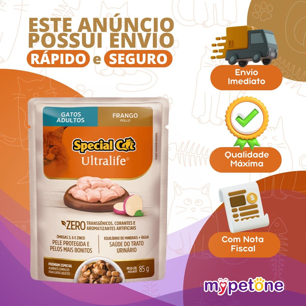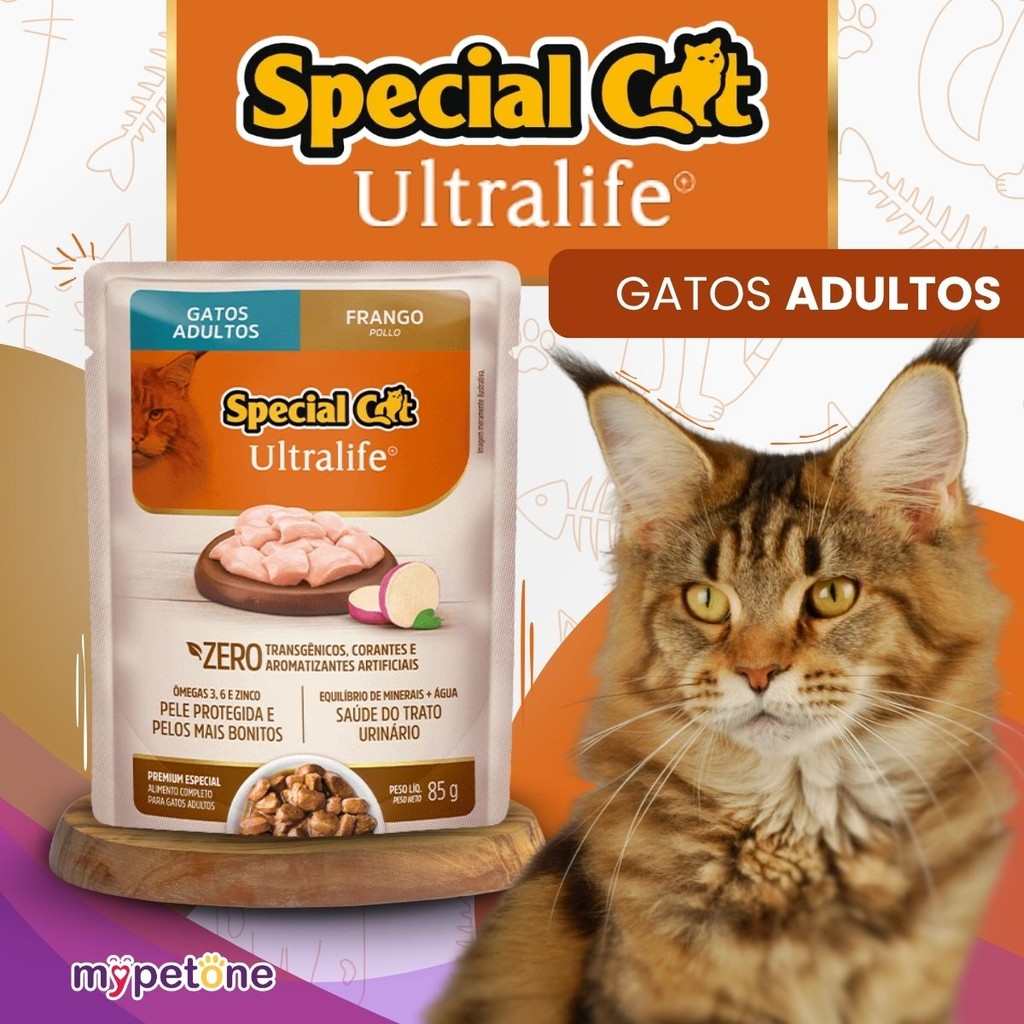 Kit 3 Caixa 12 Sachê Special Cat Ultralife Adultos Sabor Frango - 85g