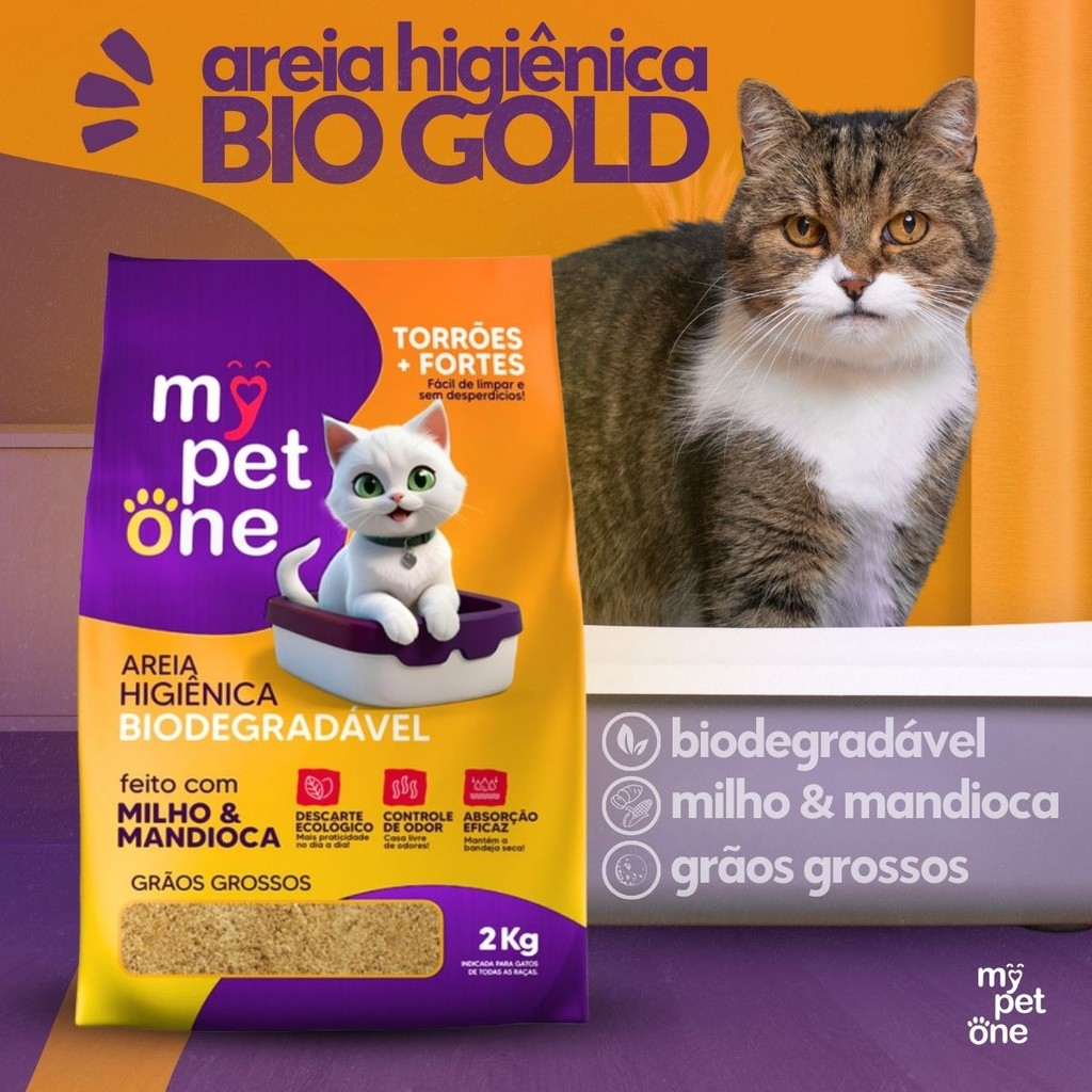 Kit 10 Areia Biodegradável Gatos Bio Gold Grossa MyPetOne 20kg