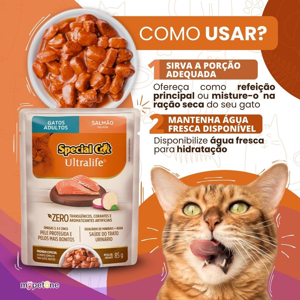 Kit 3 Caixa 12 Sachê Special Cat Ultralife Adultos Sabor Salmão 85g