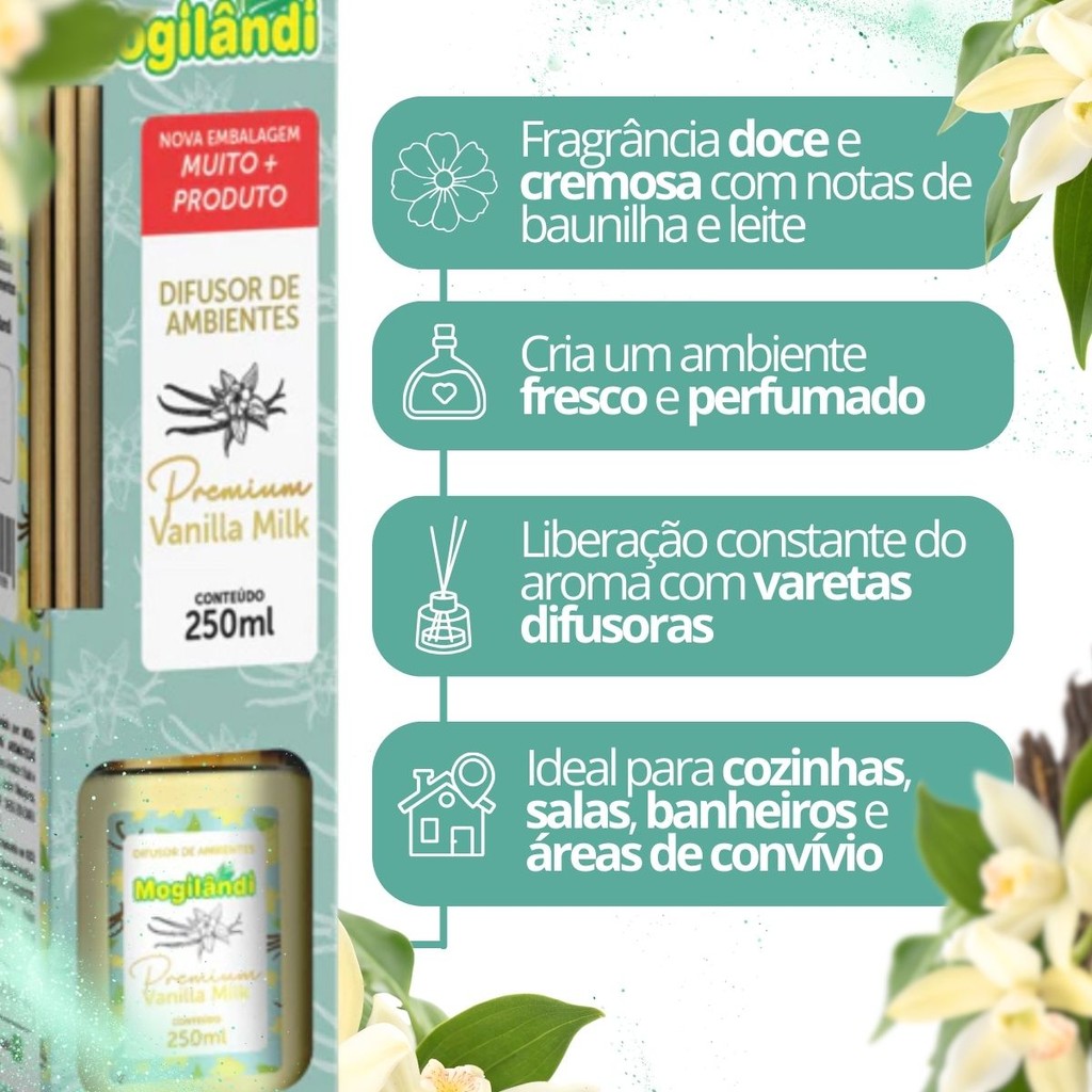 Difusor de Ambientes Premium Mogilândi Vanilla Milk – 250ml