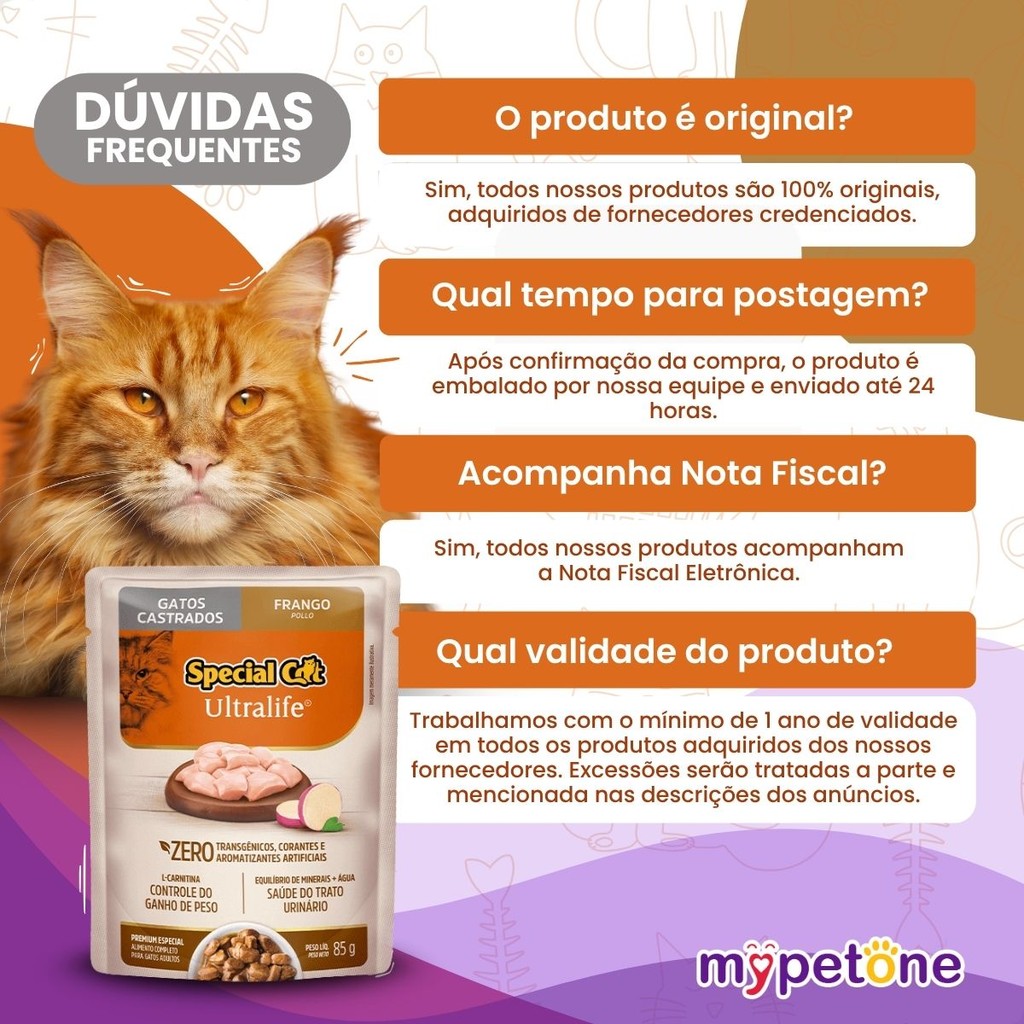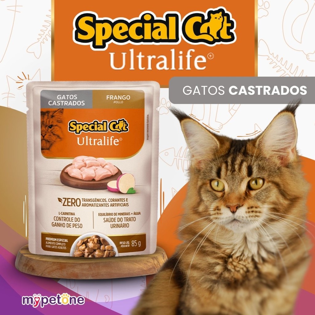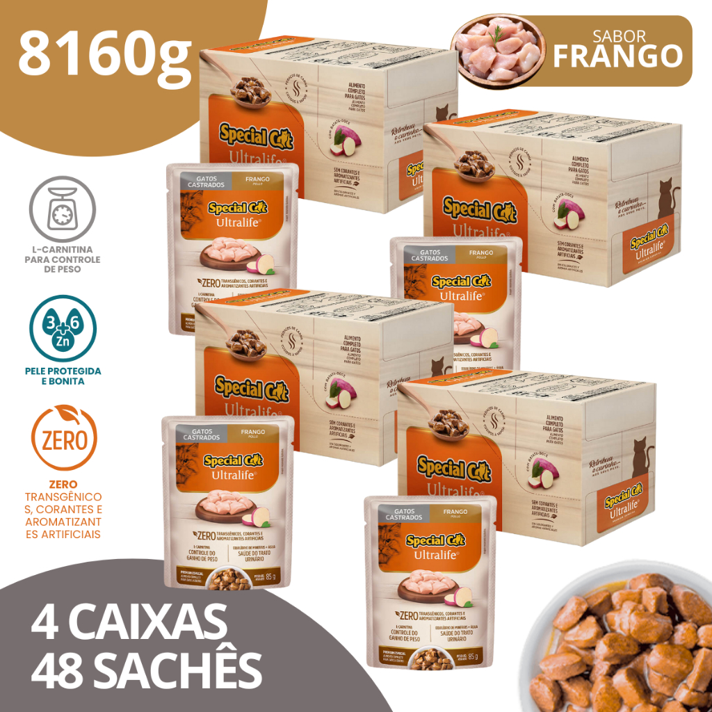 Kit 4 Caixa 12 Sachê Special Cat Ultralife Castrados Sabor Frango - 85g