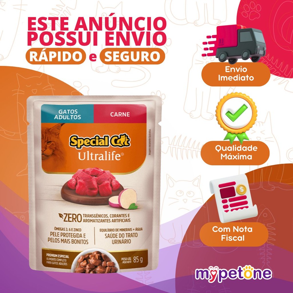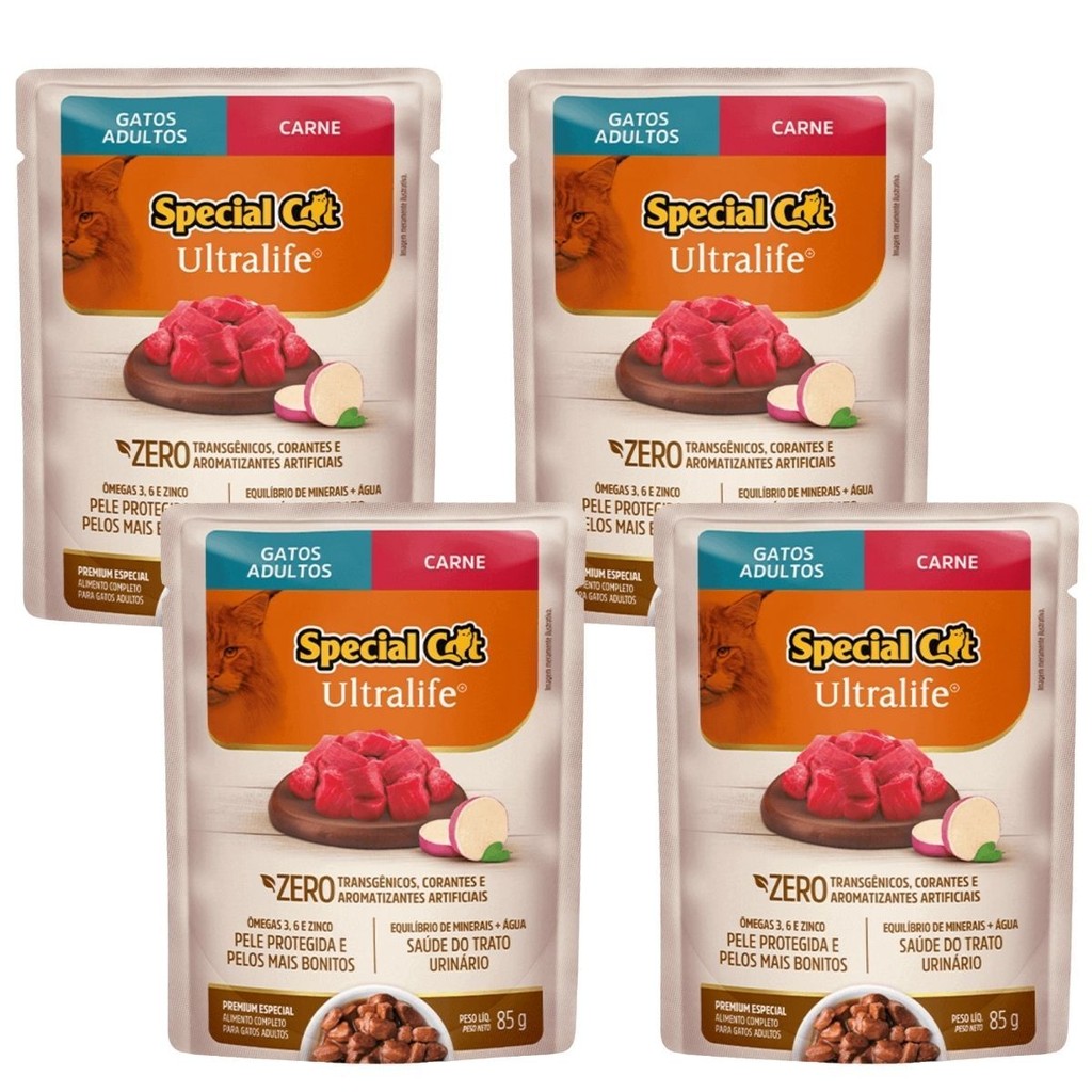 Kit 4 Caixa 12 Special Cat Ultralife Sachê Adultos Sabor Carne - 85g