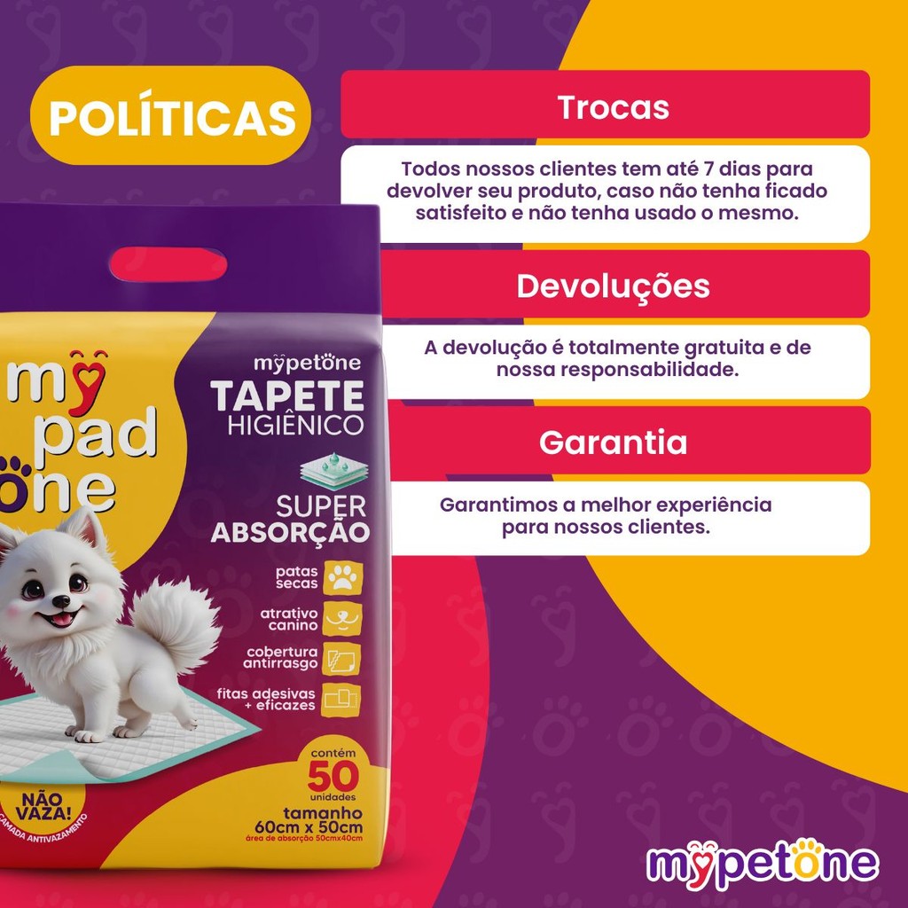 Tapete Higiênico 50 a 200 Unidades My Pad One 50x60cm Super Absorvente e Anti Vazamento