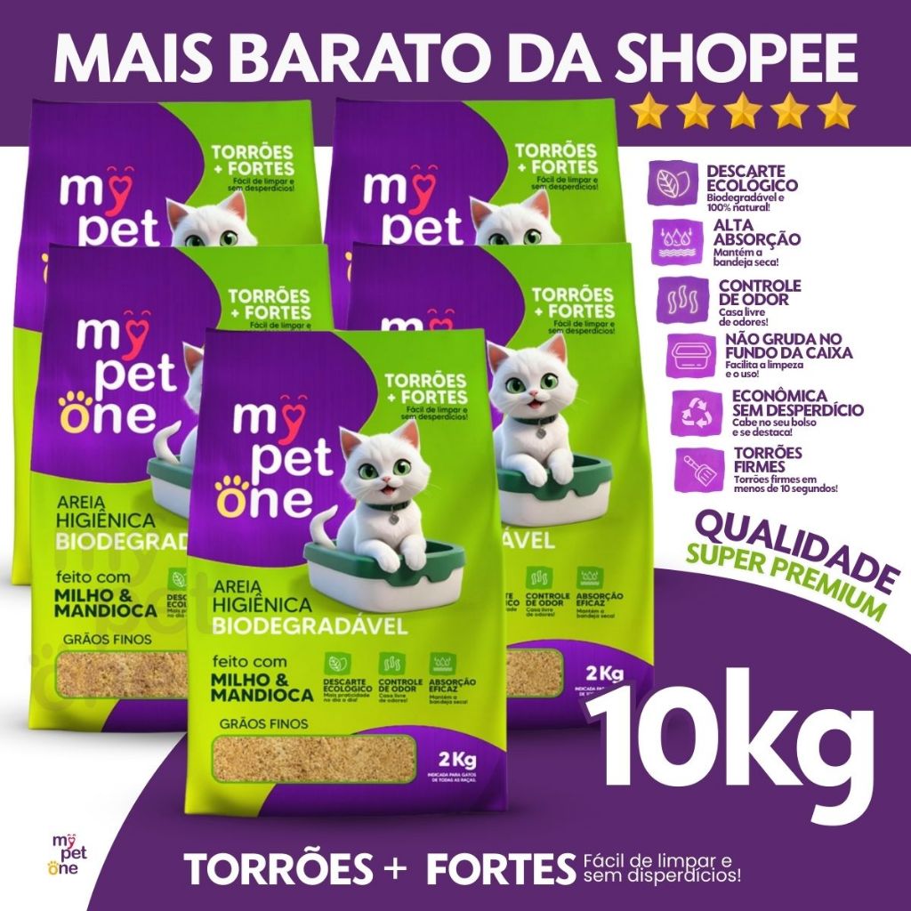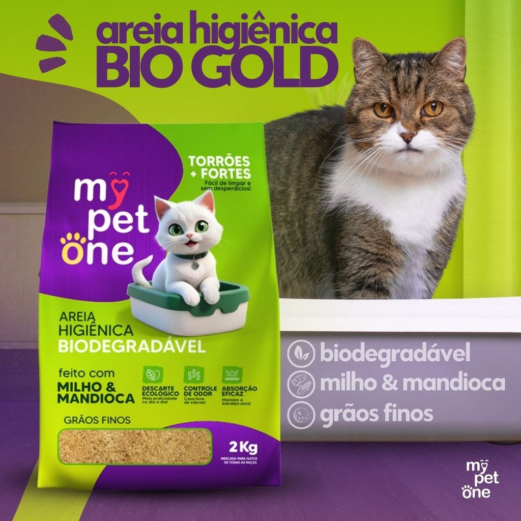 Kit 5 Areia Biodegradável Gatos Bio Gold Fina MyPetOne - 10Kg