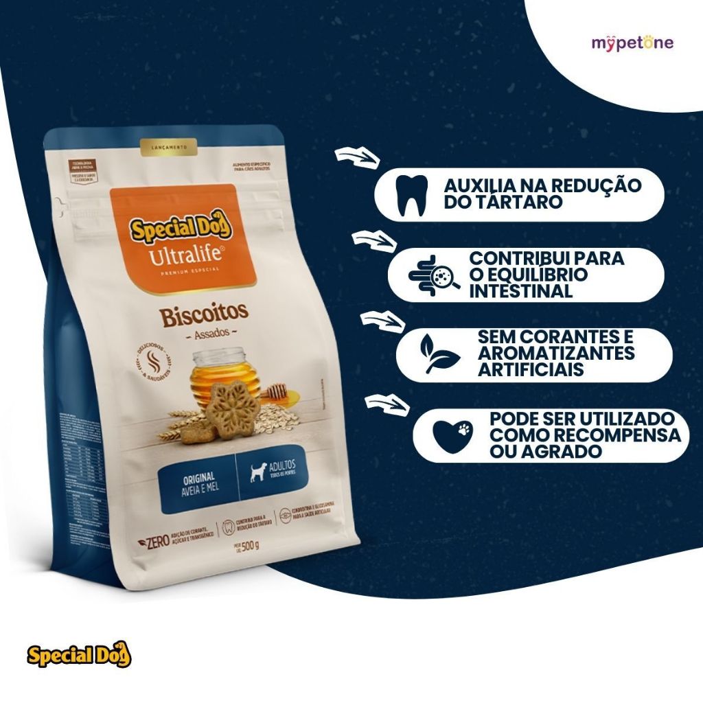 Biscoito Special Dog Ultralife para Cães Adultos Aveia e Mel 500g Petisco Nutritivo para Cachorro