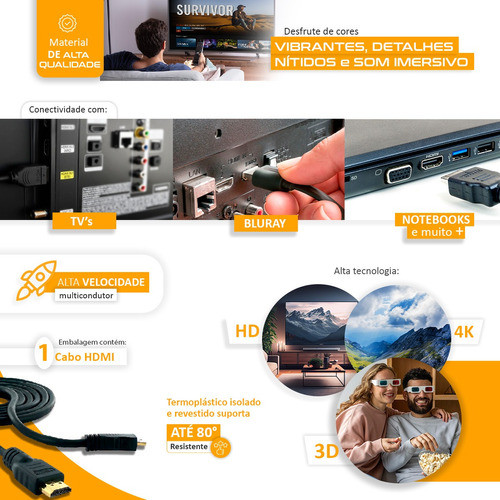 Cabo Hdmi Blindado Ultra Hd 4k 3D Varios Tamanhos