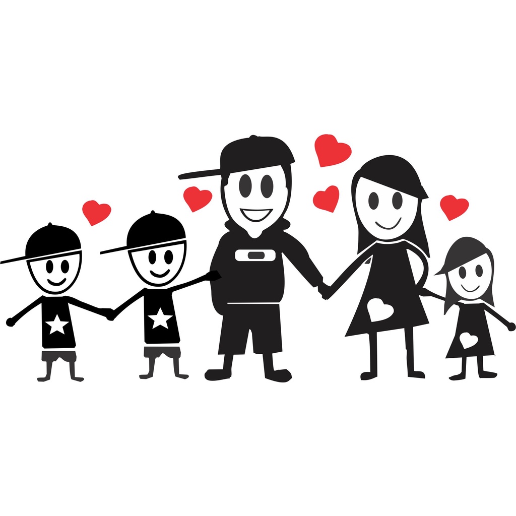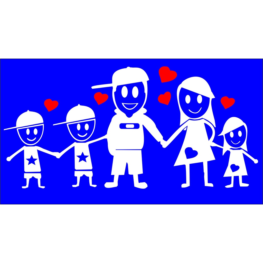 Adesivo Família Feliz - Pai, Mãe, 2 Filhos, 1 Filha - 20x10cm