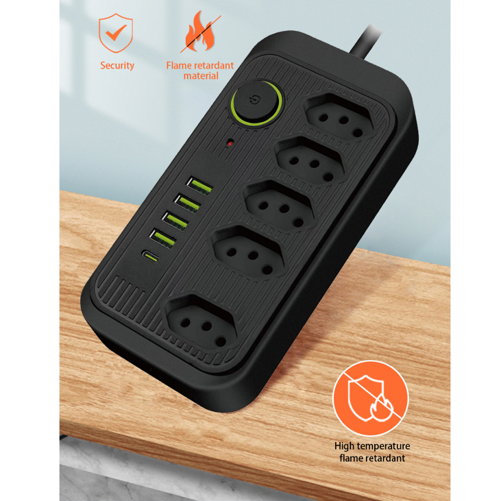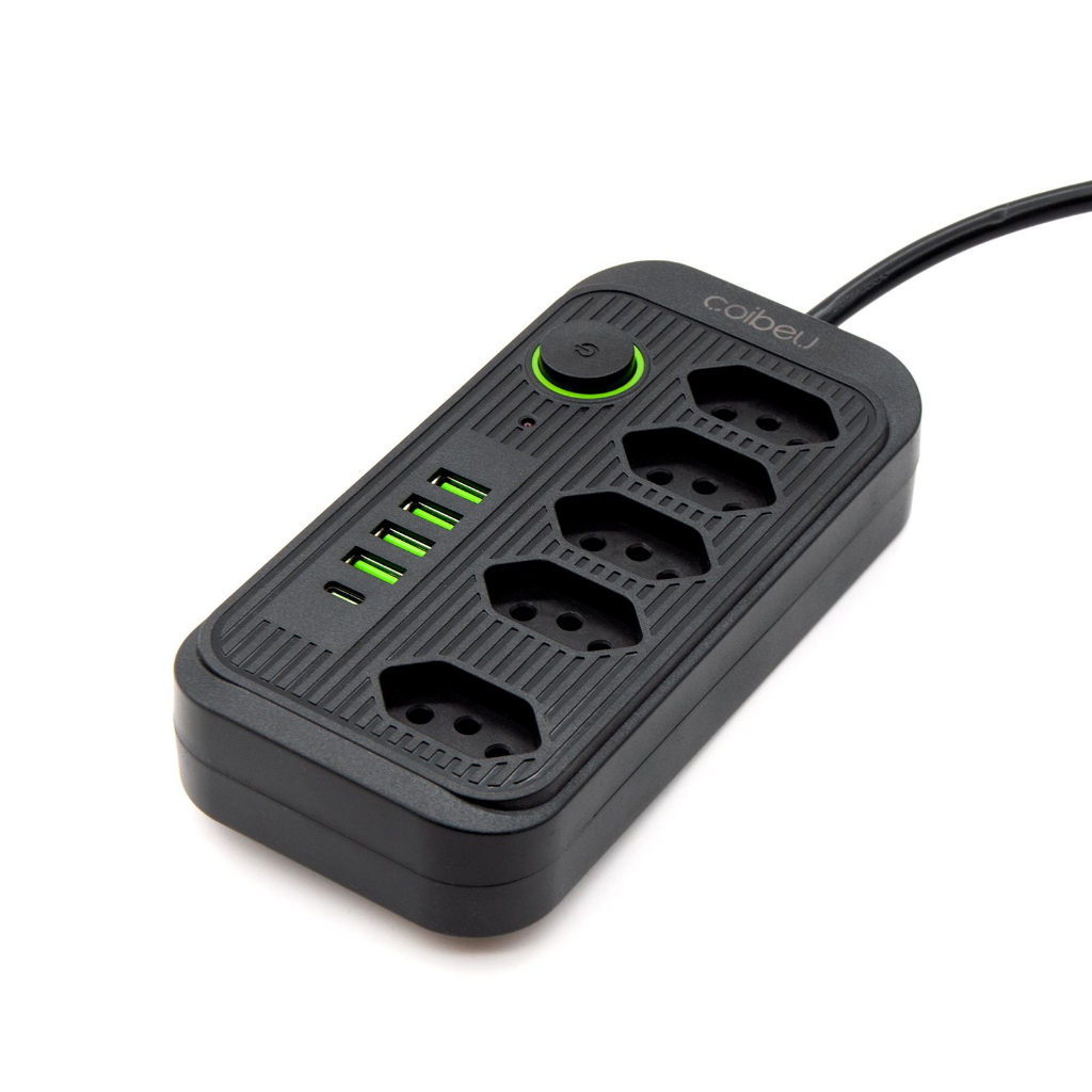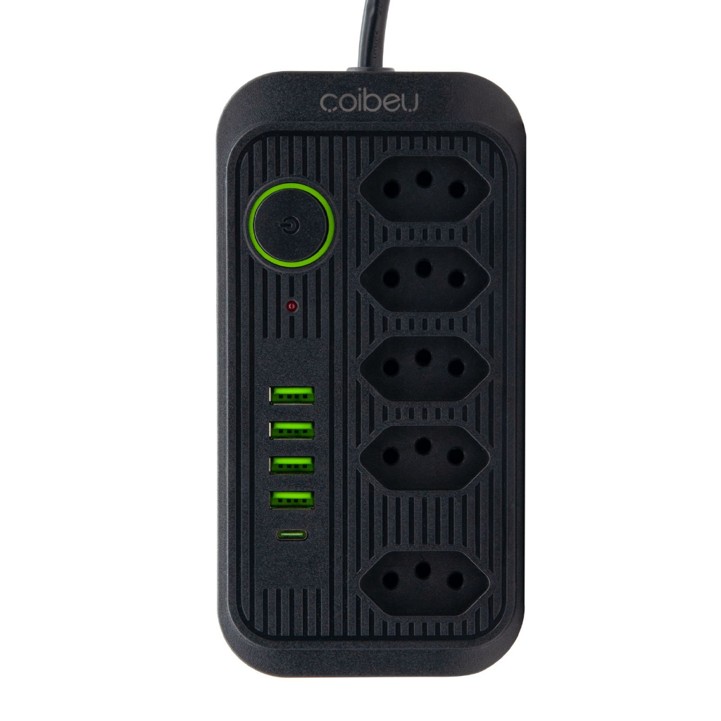 Régua Extensão de tomada 5 tomadas filtro de linha com 4 usb 1 USBC com cabo de 1.90 cm /5m Bivolt