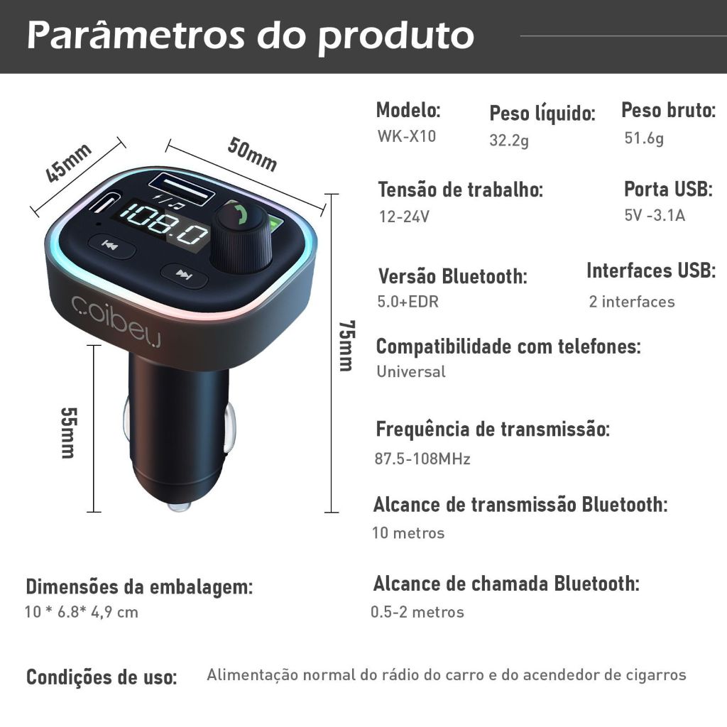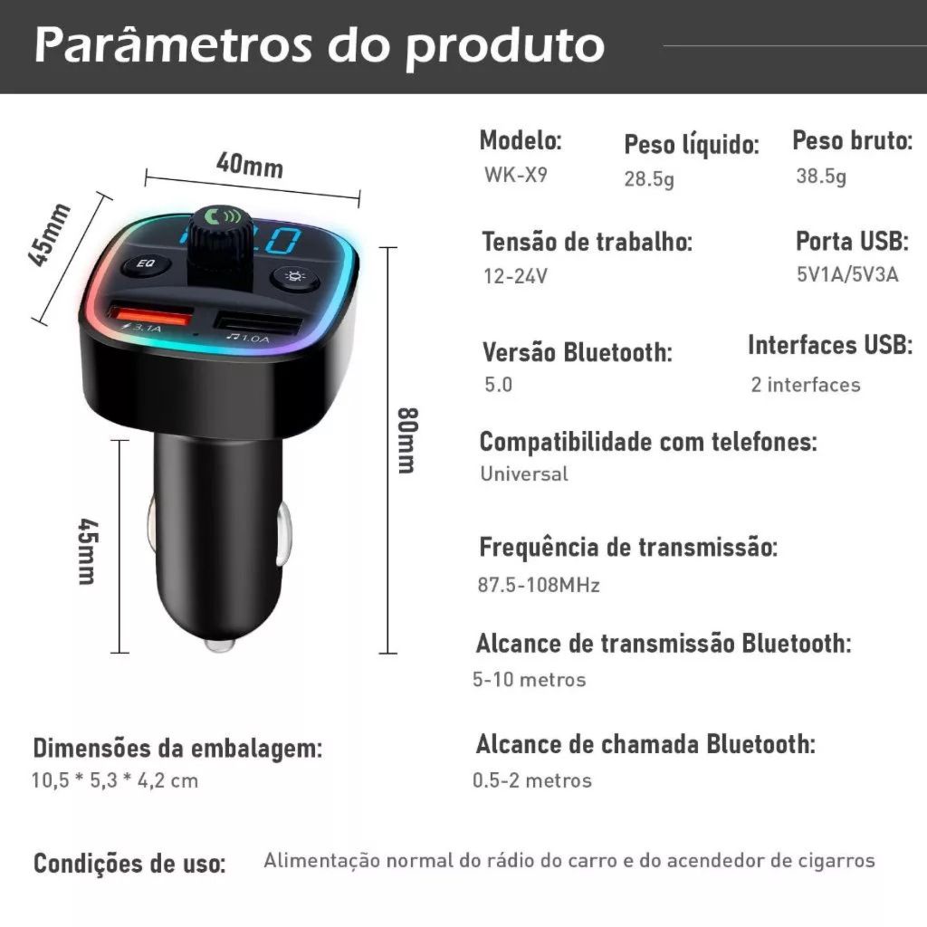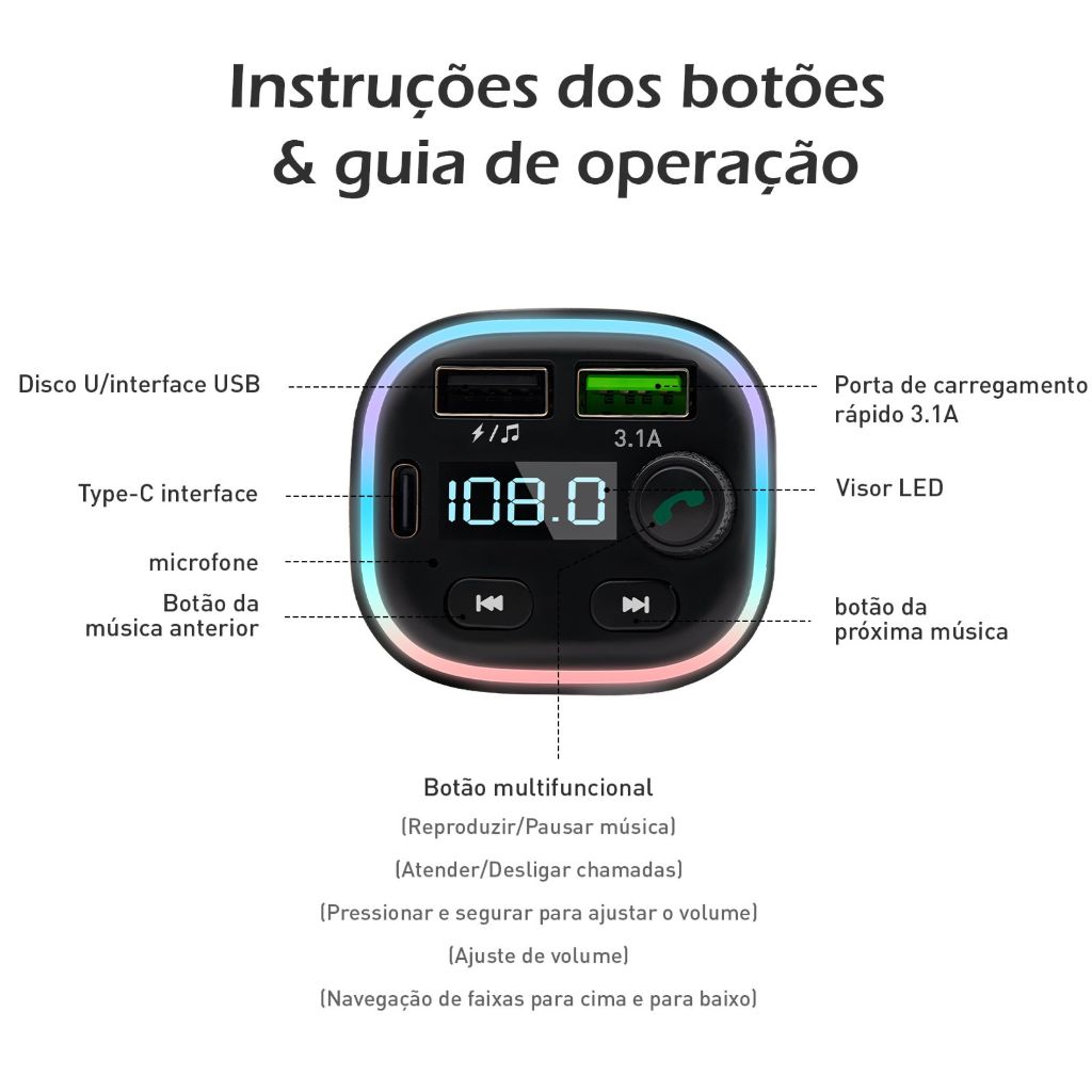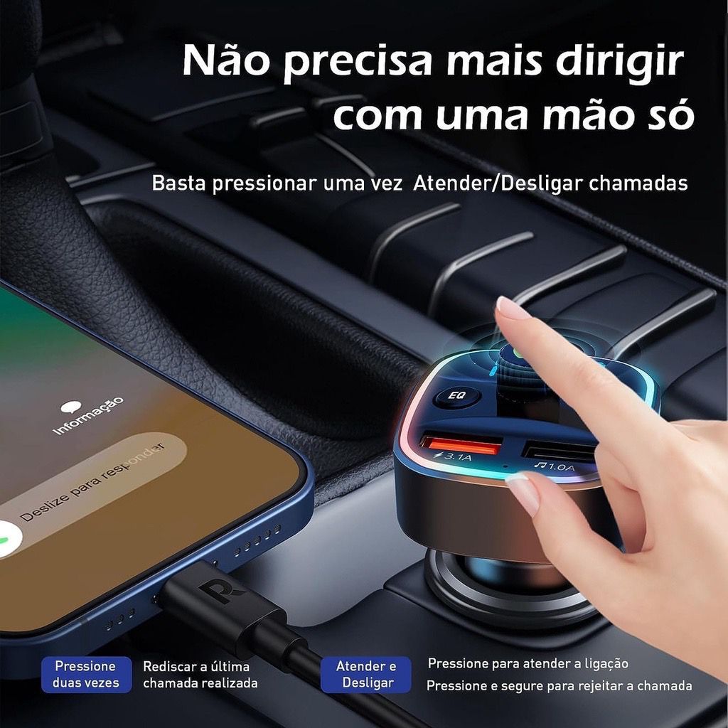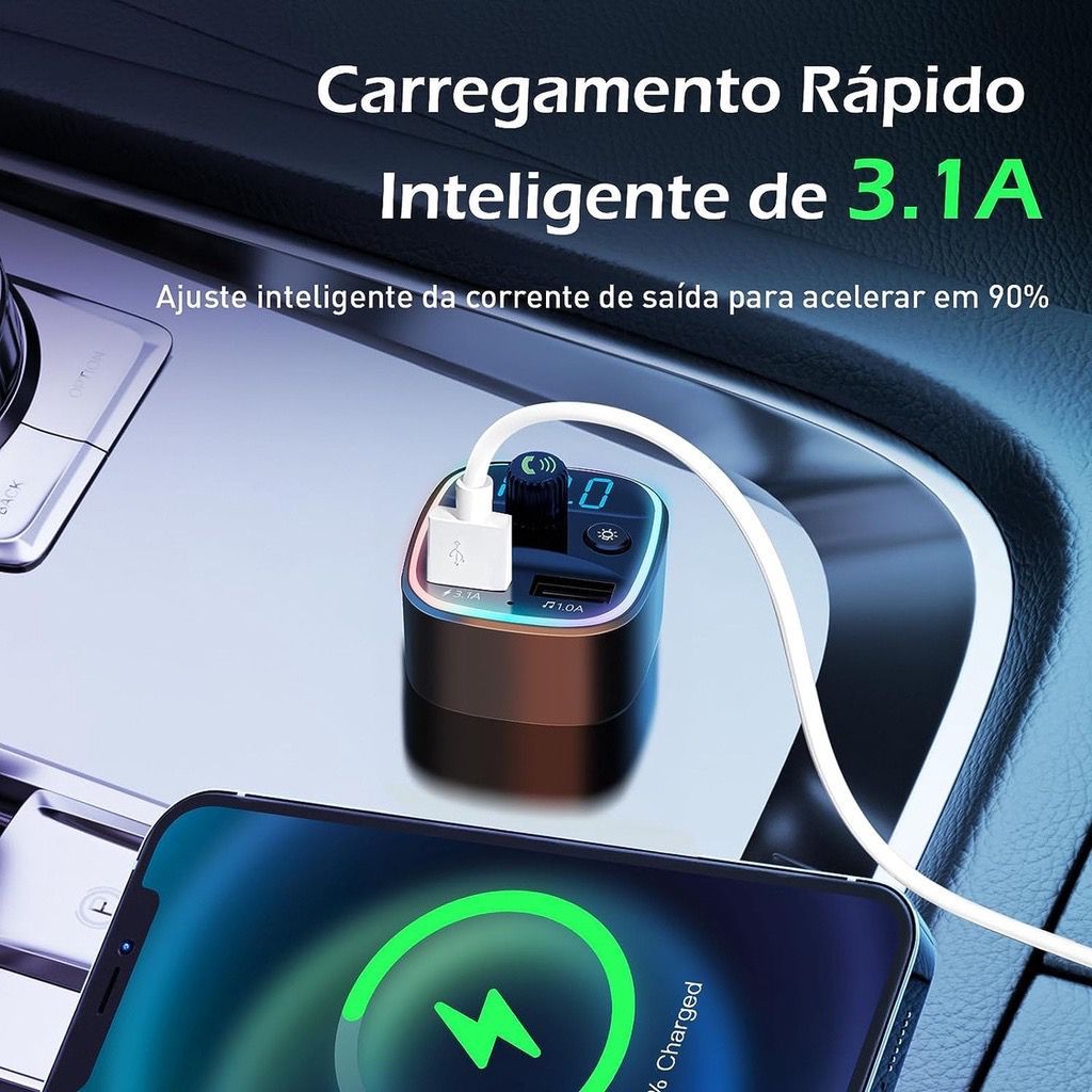 Carregador Turbo 3.1A Bluetooth Com 2 USB Transmissor FM Rádio sem fio Adaptador receptor de carro