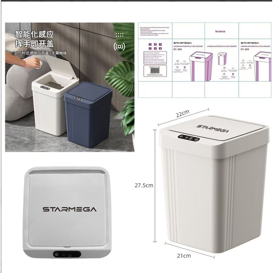 Lixeira Automática de 13 Litros Sensor de Movimento e Bateria Duradoura Abre e Fecha