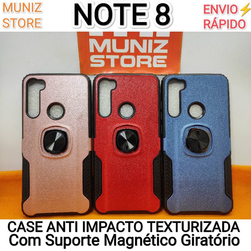 Capa Redmi Note 8 Normal Xiaomi Case Texturizada Anti Impacto Capinha Rígida Com Suporte Magnético Giratório