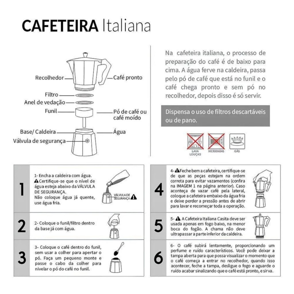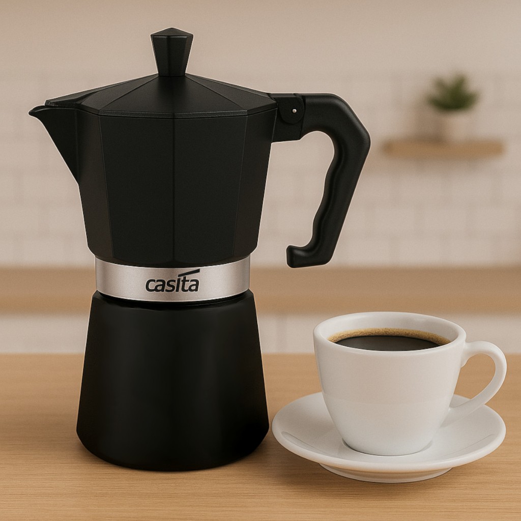 Cafeteira Italiana Casita 6 ou 9 Xícaras (300ml ou 450ml) em Alumínio Preto