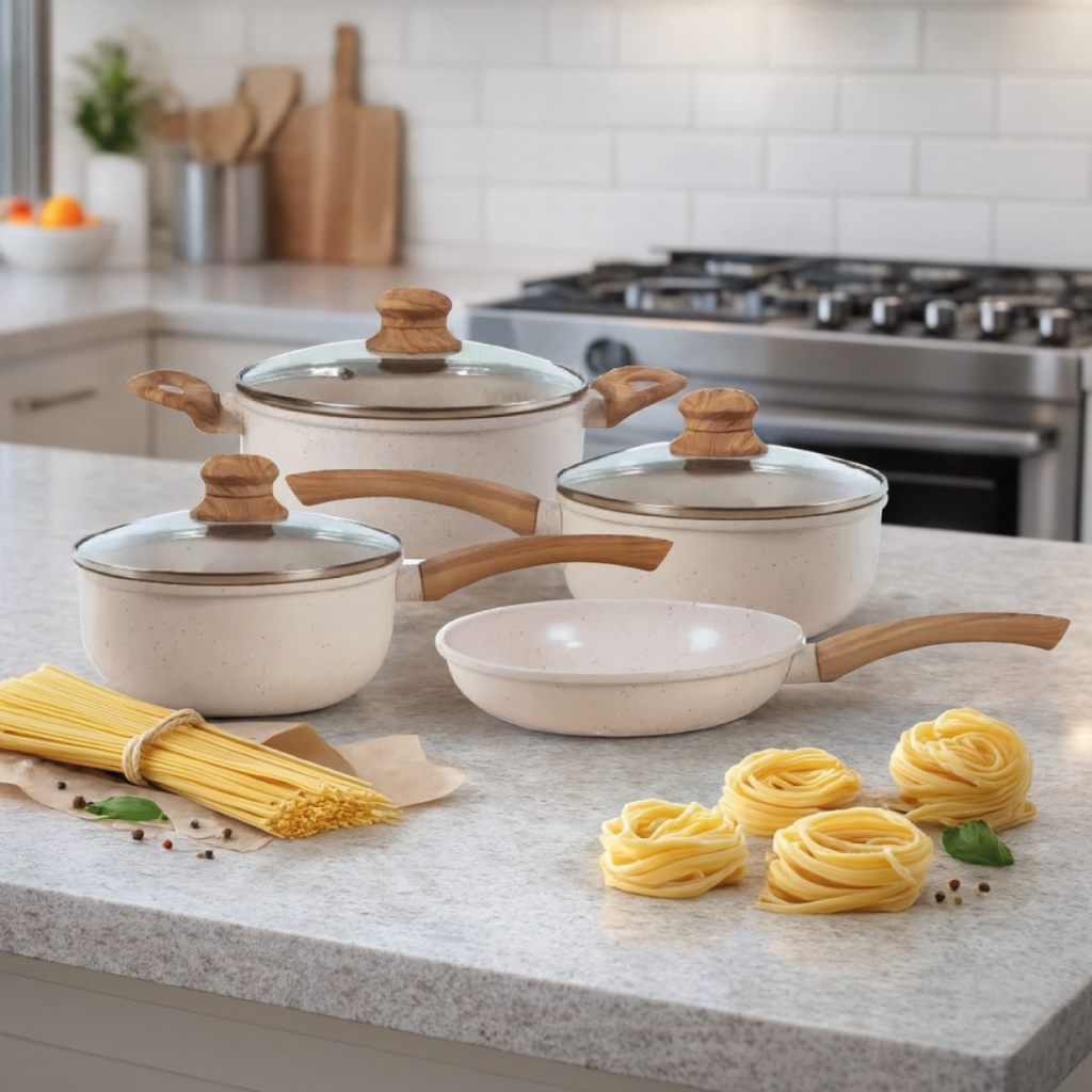Jogo De Panelas Antiaderente De Indução Revestimento Triplo Cerâmica Reforçada Conjunto Cozinha