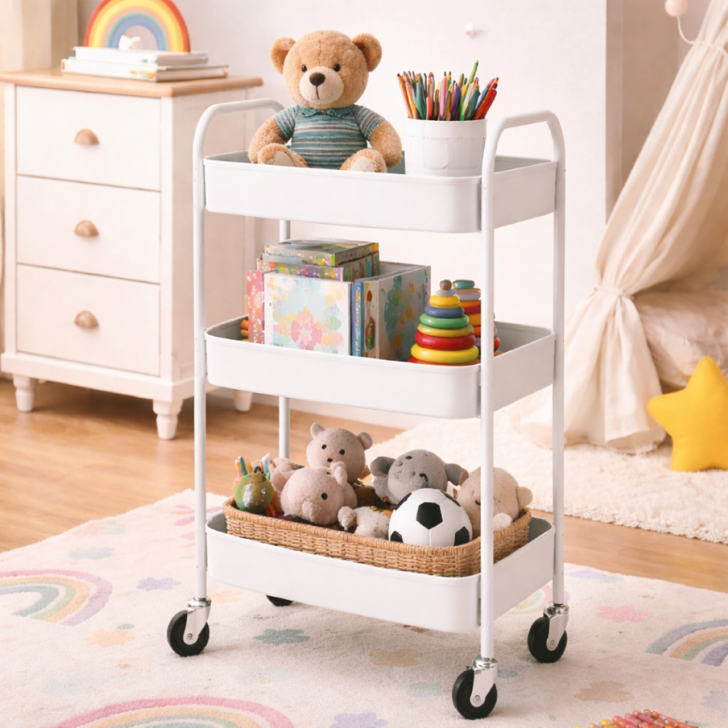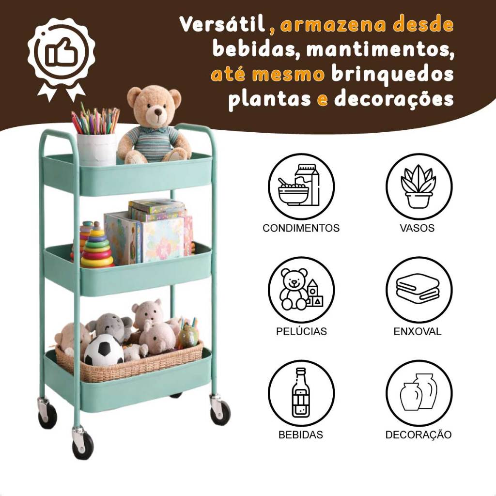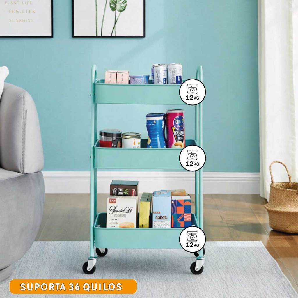 Carrinho Organizador 3 Prateleiras De Metal Auxiliar Banheiro Lavanderia Fruteira Cozinha Rodinha