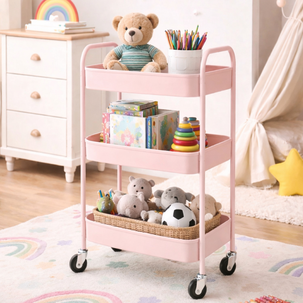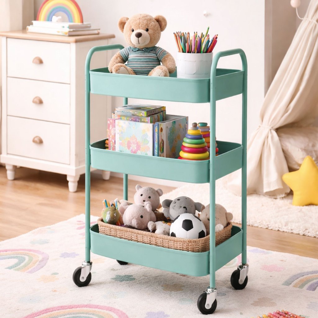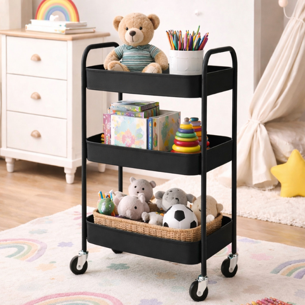 Carrinho Organizador 3 Prateleiras De Metal Auxiliar Banheiro Lavanderia Fruteira Cozinha Rodinha