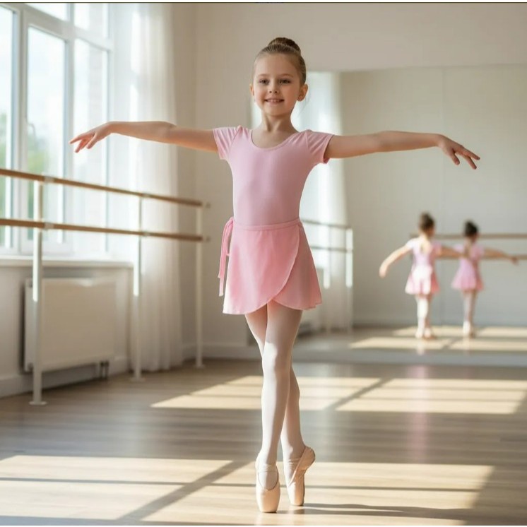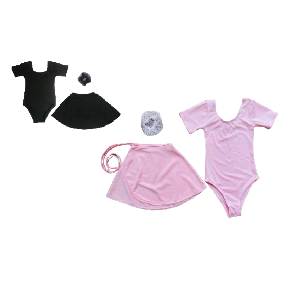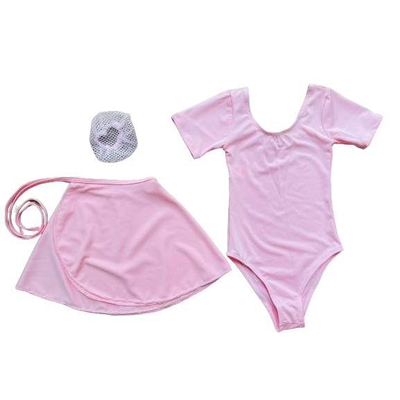 Kit Ballet Infantil 3 Peças – Collant Manga Curta + Saia + redinha